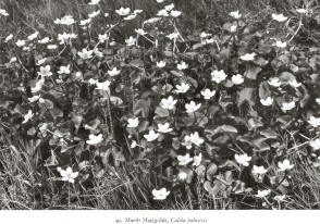 flowers of the Marsh Marigold are peculiar in that they possess no petals,