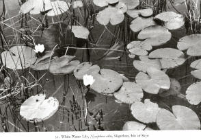 such plants as Water Lilies, Pondweeds, Water Milfoils, Water Crowfoot,
