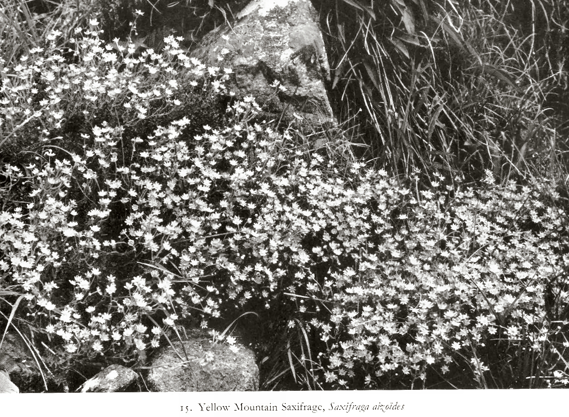 tufts of the Yellow Mountain Saxifrage, their leaves bedewed with spray.