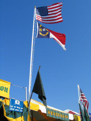 inside. They flew a 20 foot pole with an American flag, the NC State Flag