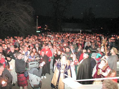 The Christmas Walk here in the California "49er Gold Country" had its beginning in 1982.To the best of our knowledge, it is the only Walk held West of the Mississippi River. This year on Saturday, December 8th. and Sunday 9th.,at 5p.m., the pipers will tune up to lead the candlelight Walk culminating in the blessing to the walkers in the "auld tongue" - Gaelic. It is a wonderfully colorful and joyous way to commence the Advent season.
