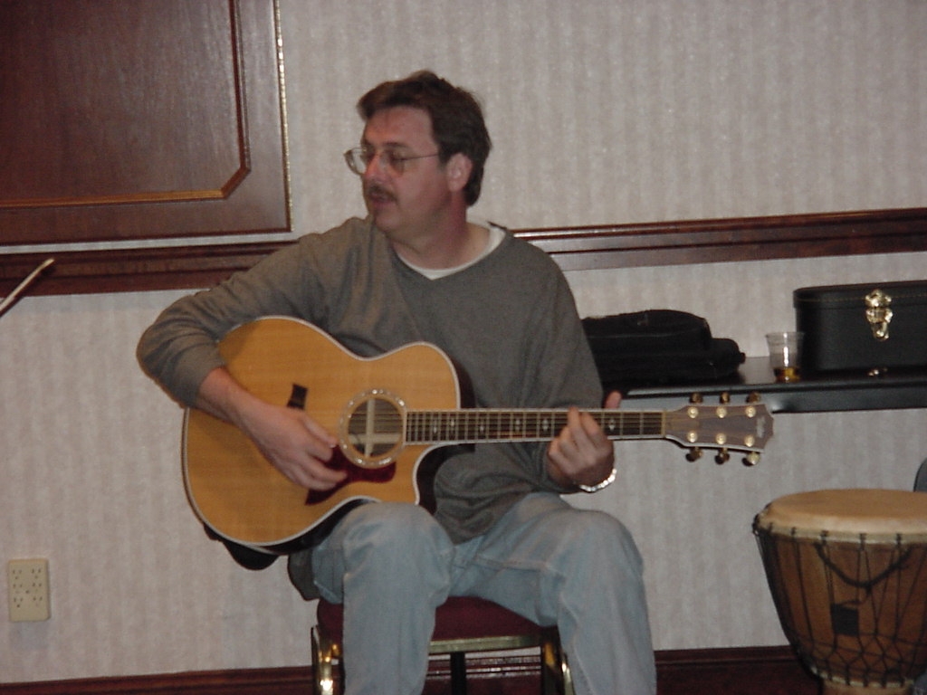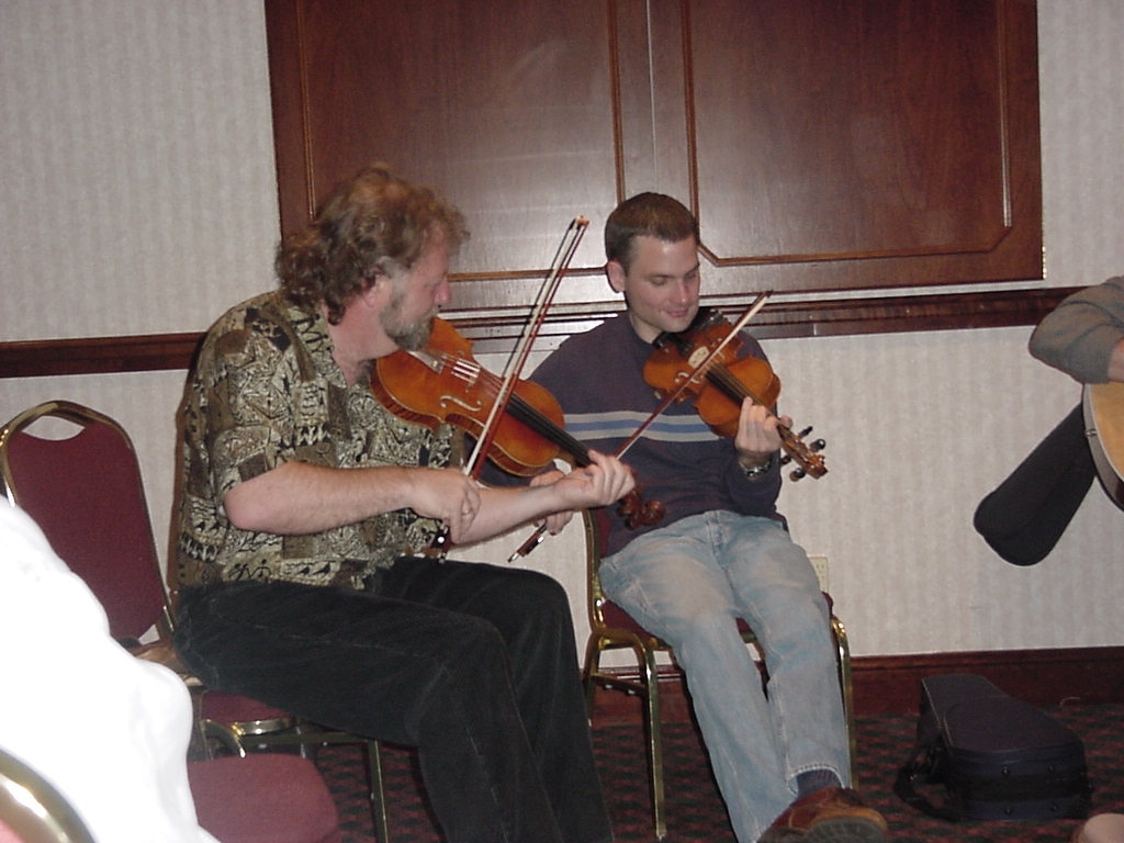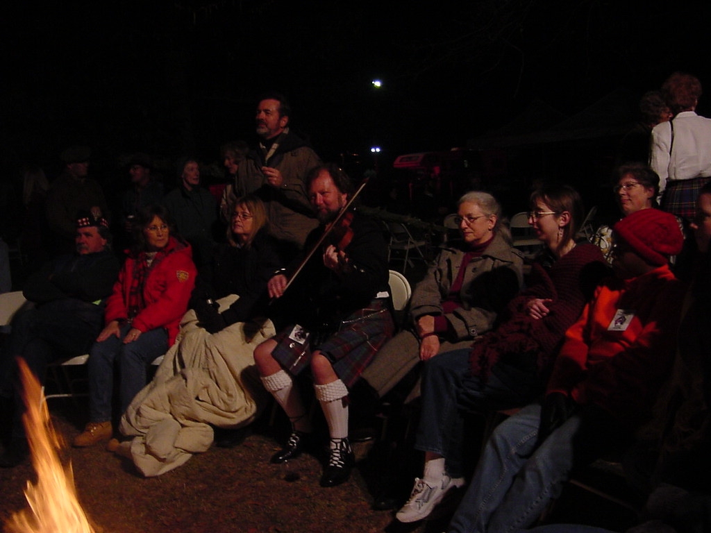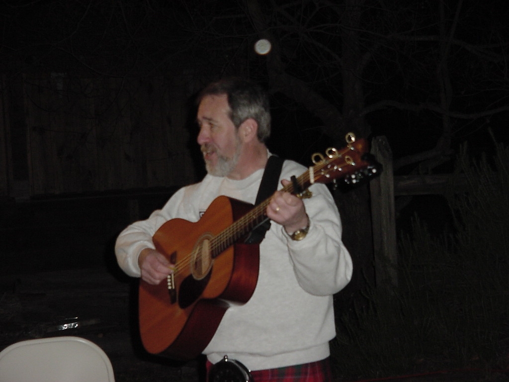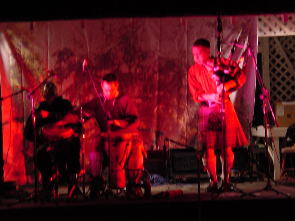 Celtic Jam by firelight and red stage lights. All of the musicians played