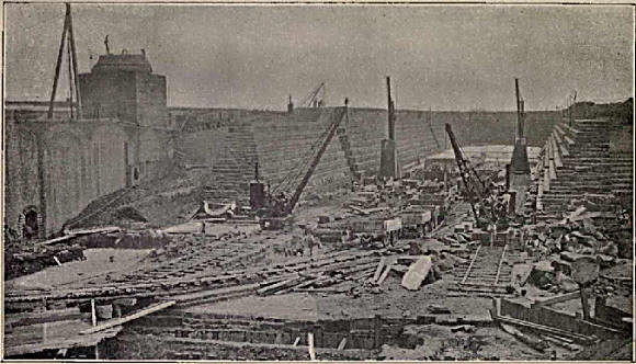 stonework at the dock walls in place, while an hydraulic jigger raised the