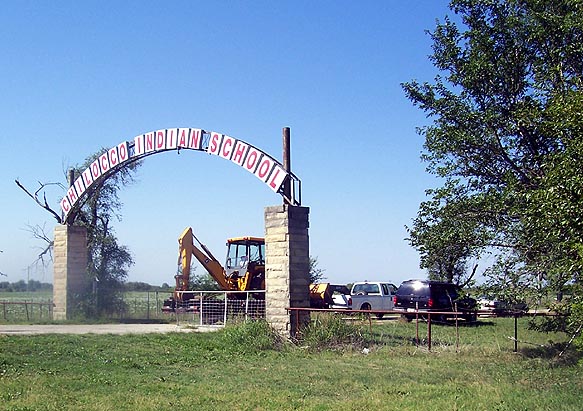 Chilocco arch gate with back hoe in tow and I barely caught a picture of it.