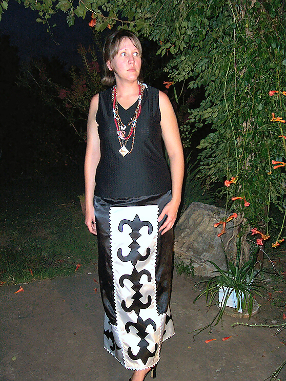 are: leggings, breechcloth, vest, shirts and scarves she makes for the
