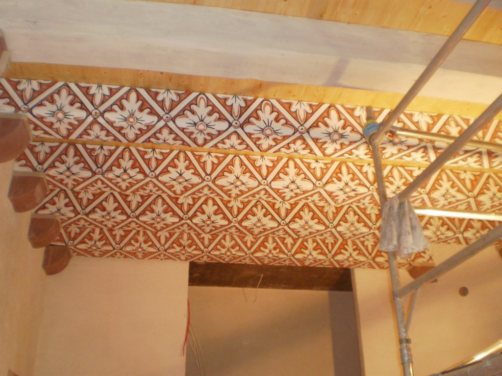 Jennifer Merredew commenced painting the Gt. Hall Ceiling a couple of weeks ago and as you will see from the attached she is making a really wonderful job of it. So looking forward to seeing it completed.