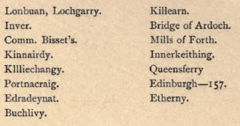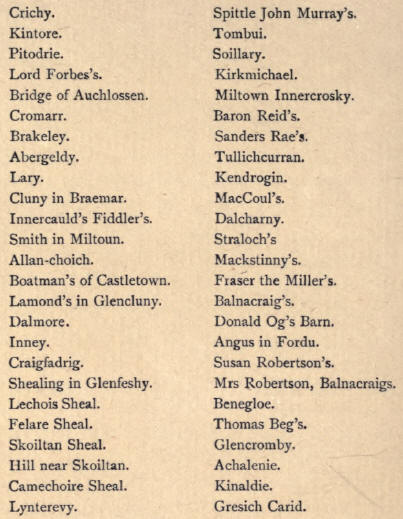 The following, copied from a note-book in the handwriting of his son and successor in Strowan, will be read with interest, more particularly when it is borne in mind that Carolina Oliphant, Lady Nairne, the sweet singer of Strathearn, was the fugitive's grand-daughter. Many of his hiding-places were the residences of the followers and sufferers in the Rising, and how he evaded apprehension in his wanderings seems even more surprising than the escape of the young Ascanius himself.