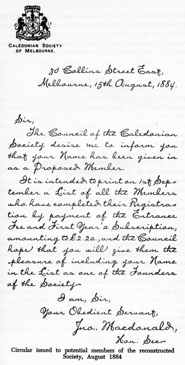 Thus in June of 1884 Melbourne's Caledonian Society took on a new lease of life.