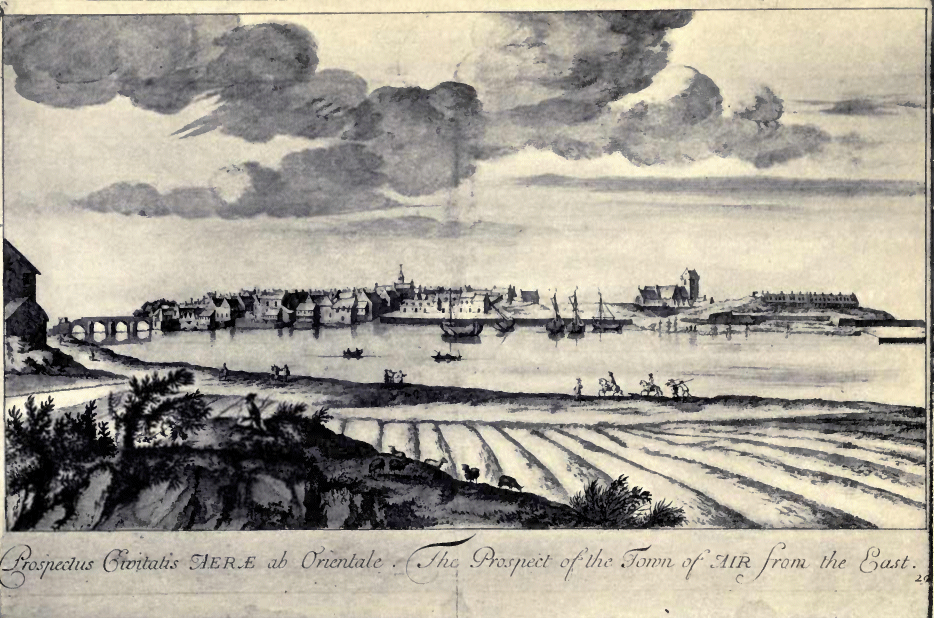 Slezer's view, dated 1693, and the earliest pictorial record existing, shows the river on the Ayr side seaward of the Brig, with houses and small back lands to the water's edge, and, nearer the sea, infrequent and decaying walls of harbour masonry; while at the river's mouth and along the northern bank are undulating links and sand-dunes of wide extent, of which Burns' lines depictive of the earliest Ayr are literally as poetically true :