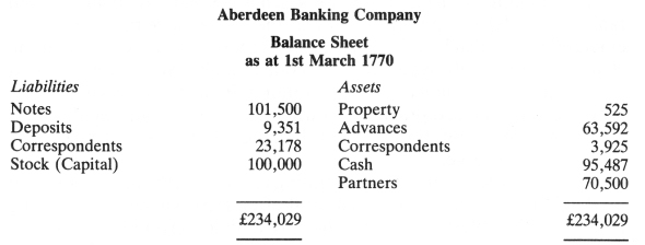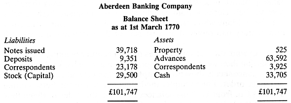 of liquidity. For example an abridged version of the 1770 balance sheet
