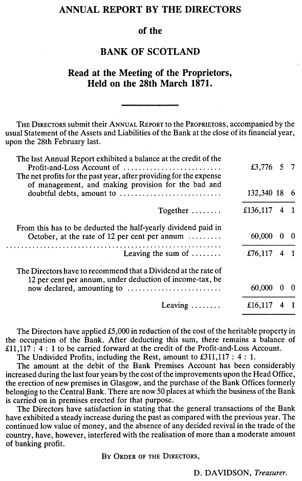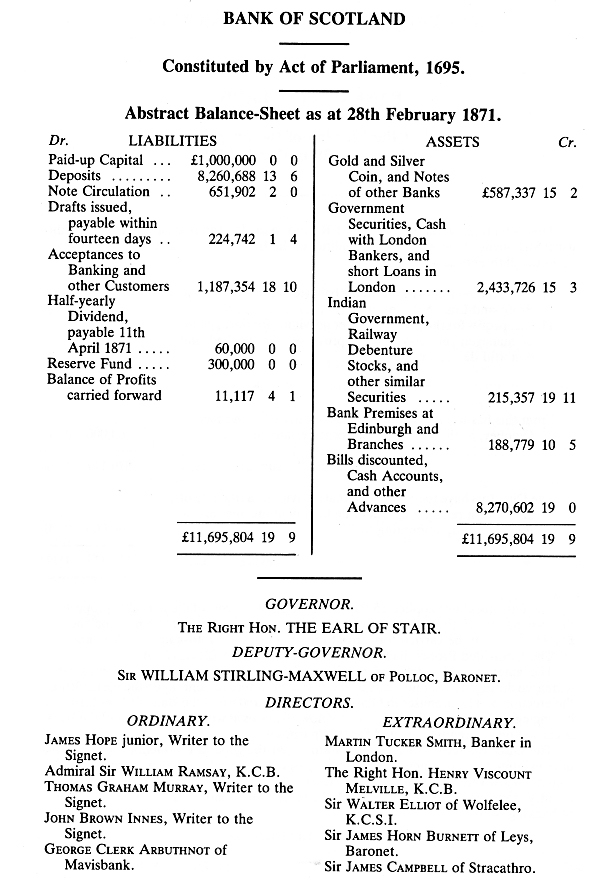 sheets. An early report of the Bank of Scotland is reproduced here as an