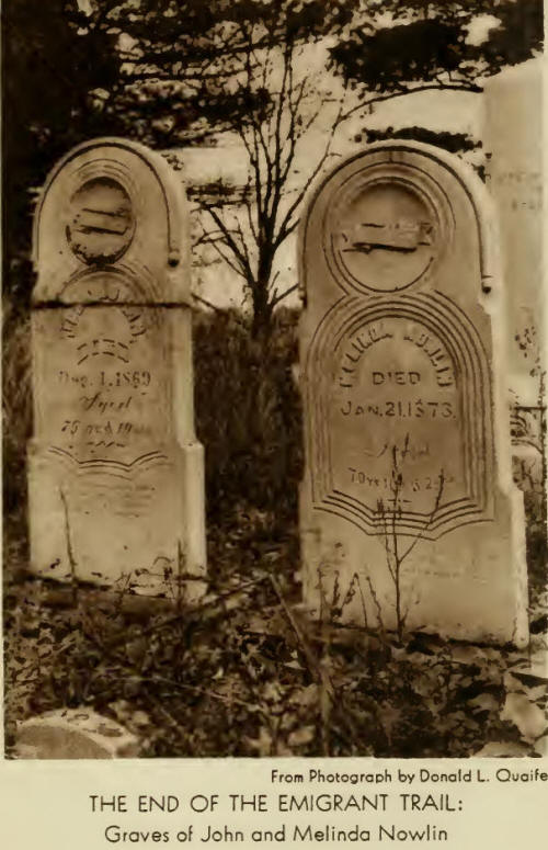 We laid her by father's side in a place selected by himself for that purpose. It is a beautiful place, about a mile and a half southwest of where they lived and in plain sight of what was their home. [The Nowlin family cemetery occupies a small sand ridge near the southwest corner of William Yowlin's farm, adjoining Van Born Road, the present name of the highway running between Dearborn and Taylor townships. John Nowlin and Melinda are buried side by side; he died on Dec. 4, 1869, and she on Jan. 2, 1873. The graves of William and Adelia Nowlin and several of their children are in a row immediately west of the graves of John and Melinda. Several other members of the family, including William's Sisters Abby and Bessie, are buried close by. In 1886 William Nowlin caused a receiving vault to be erected, which he fondly hoped would stand forever. It is still standing, but already is in a sad state of disrepair.]