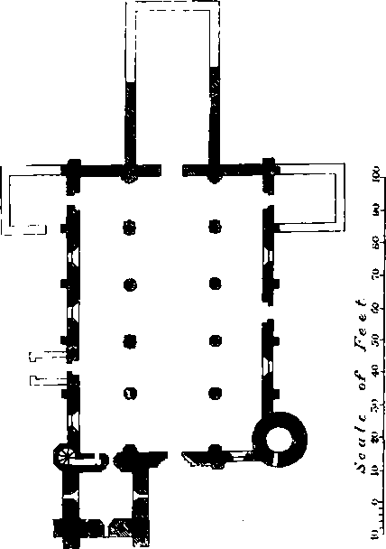 till 1806, of a nave with two side aisles, and a transept formed by the