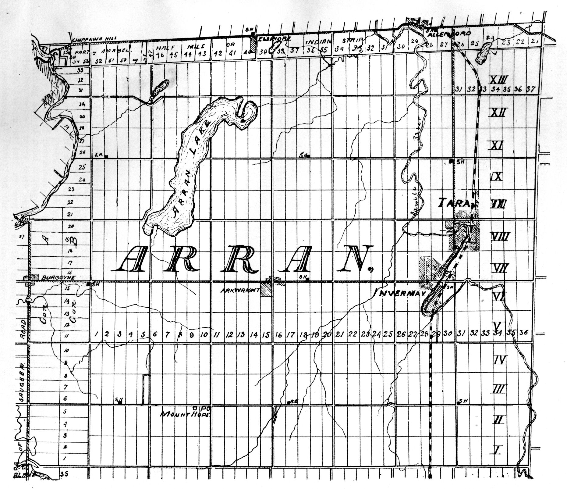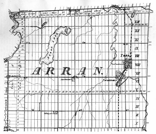The township of Arran is named after the Island of Arran, at the mouth of the Clyde, Scotland.