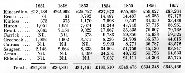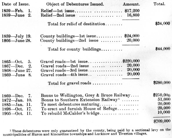 LIST OF DEBENTURES ISSUED AT VARIOUS TIMES BY THE COUNTRY OF BRUCE