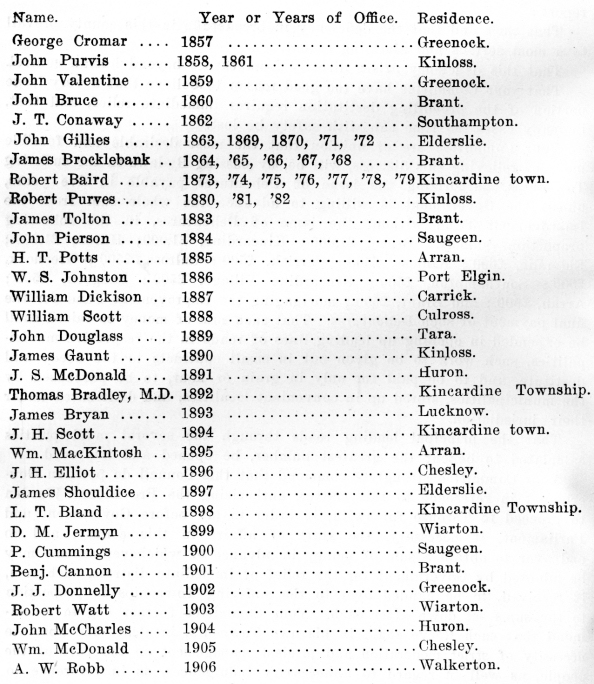 the Township of Greenock, and the Villages of Chesley and Paisley.