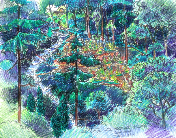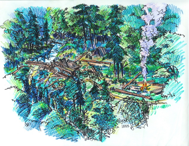 The two scanned attachments show the site in 1855 as Wm. McClure was clearing the forest and setting up his first sawmill, and much earlier when the native settlement upstream included gardens scattered along the creek in the vicinity of the house.