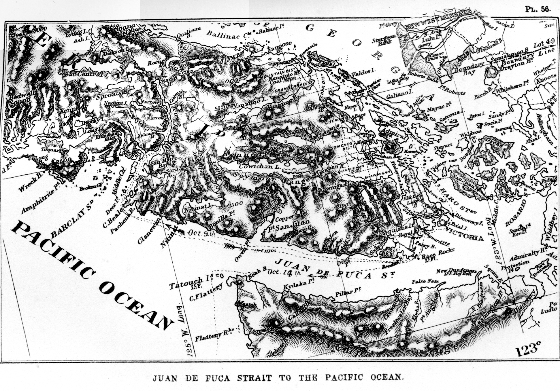 fiords of Howe Sound and Jervis Inlet, into the middle of the Straits of