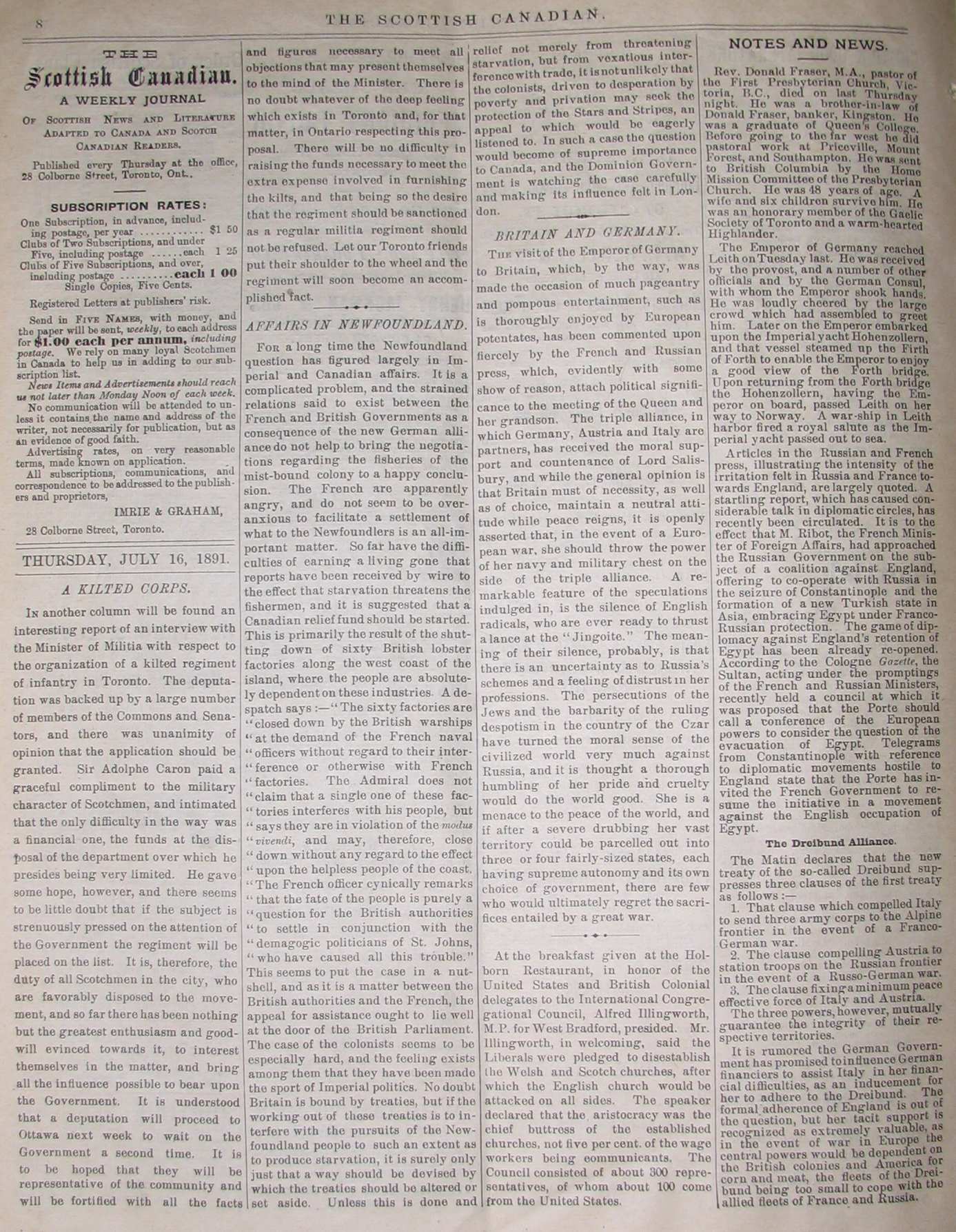 The Scottish Canadian Newspaper