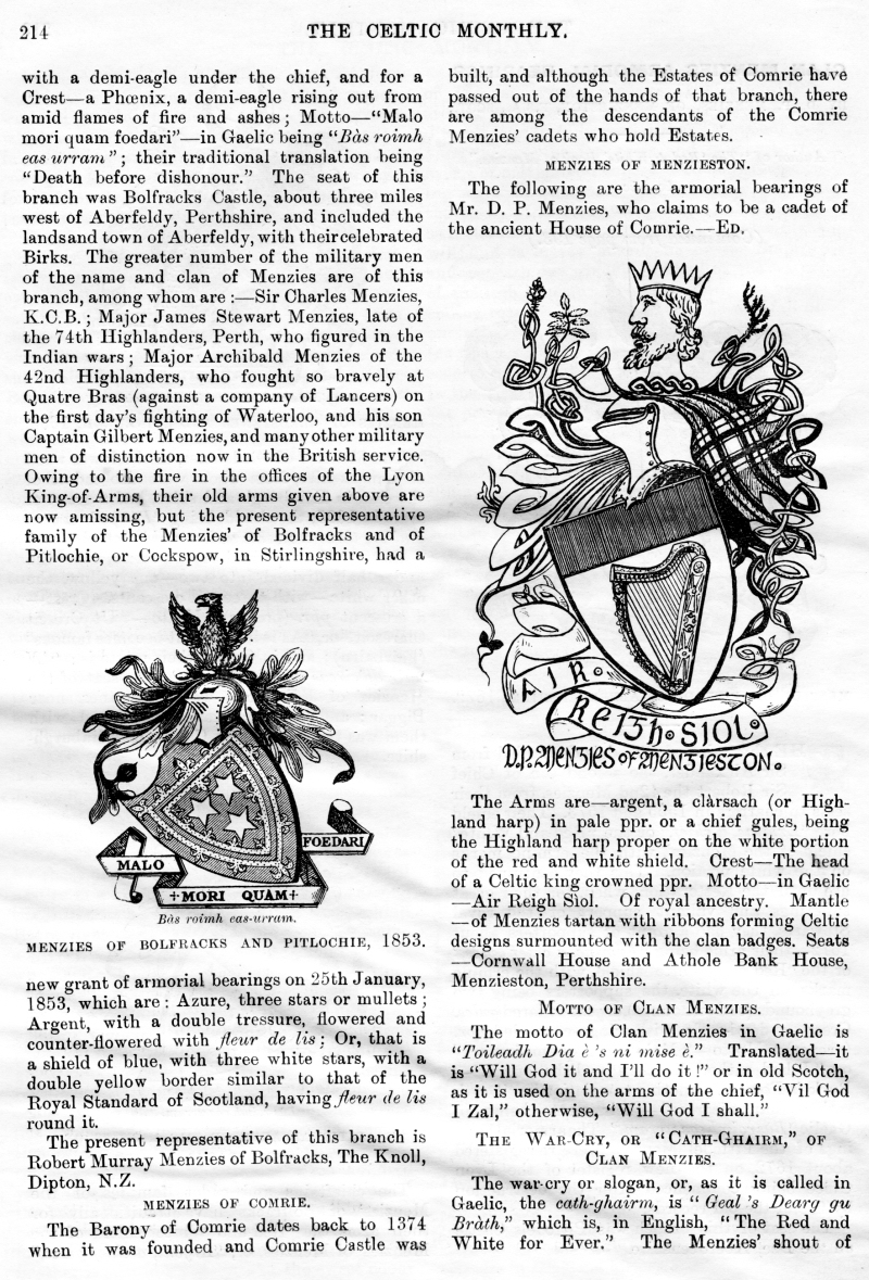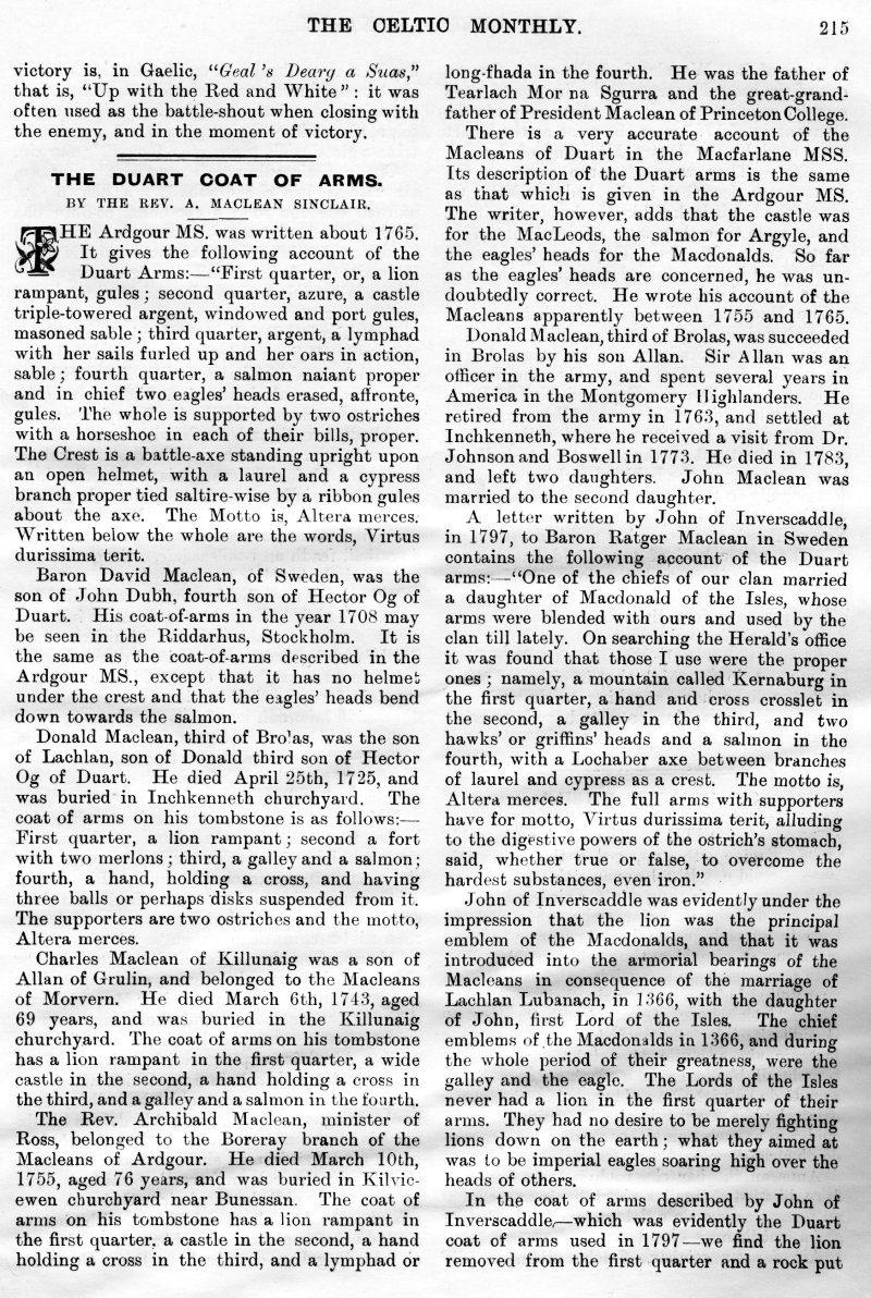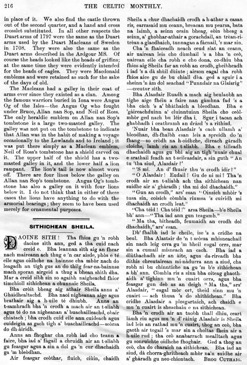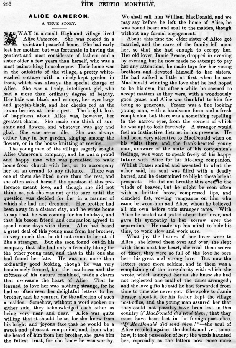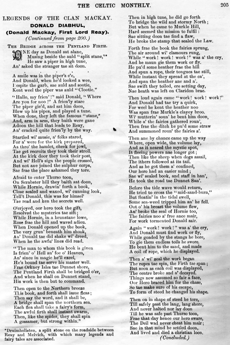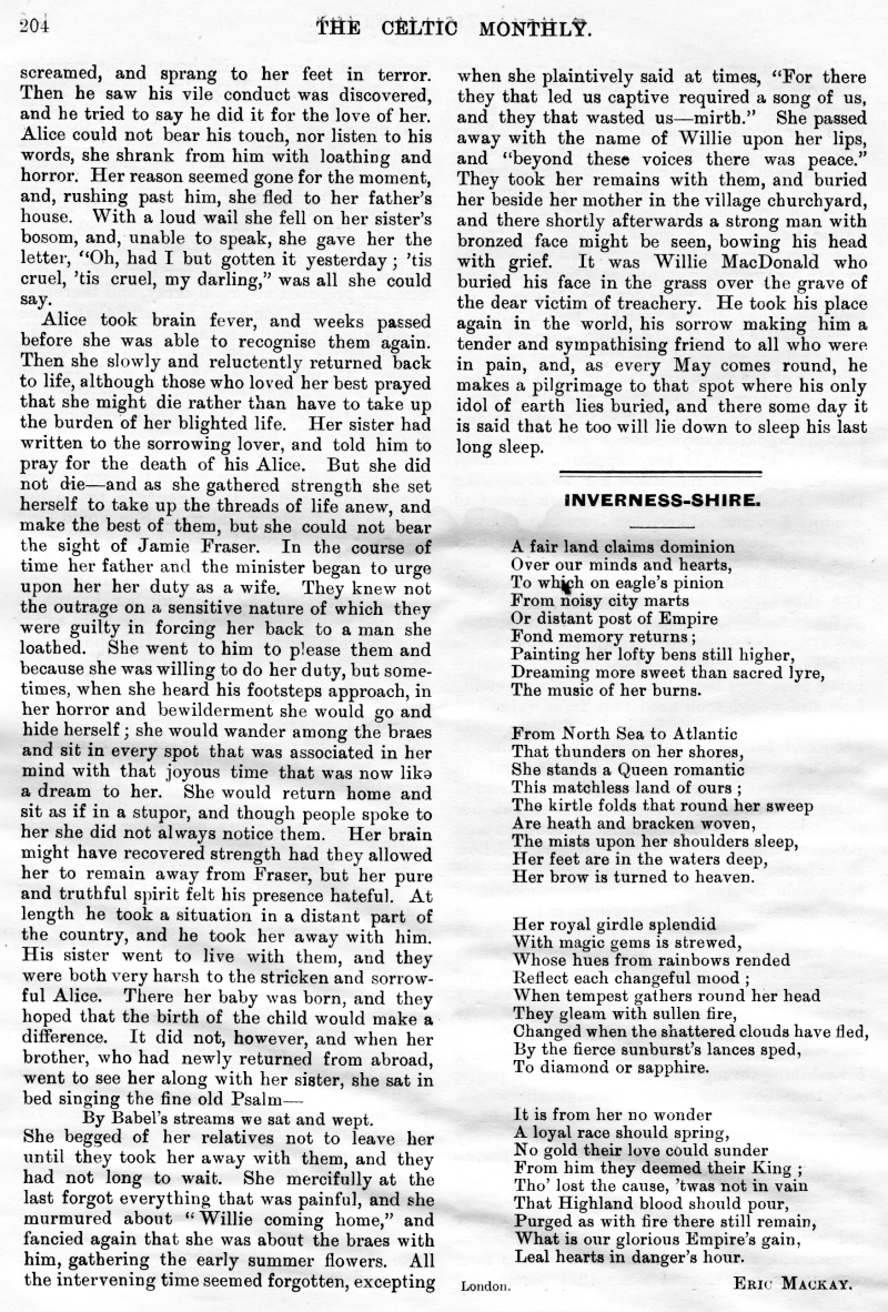The Late Donald N Nicol, An Old Graveyard, Alice Cameron, Inverness-Shire, Legends of the Clan MacKay, Tour of His Excellency Field Marshall MacDonald, The Closing Doors, The Last Evening in the Highlands, Clan Menzies Armorial Bearings, The Duart Coat of Arms, Sithichean Shelia, The Martial Music of the Clans, The Pass of the Shadow, The "Colquhouns Peabroch", The "Nether Lochaber" Memorial.