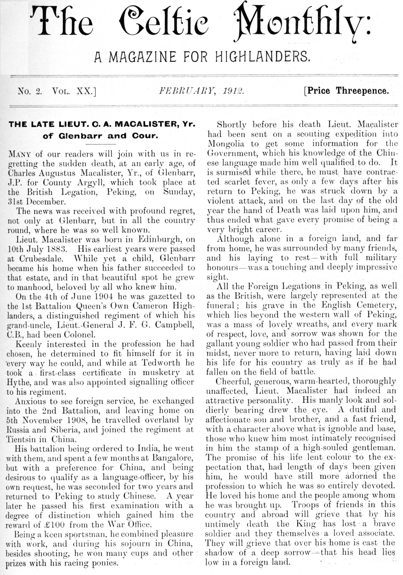 The Late Lieut. C. A. MacAlister of Glenbarr and Cour, Sketches of