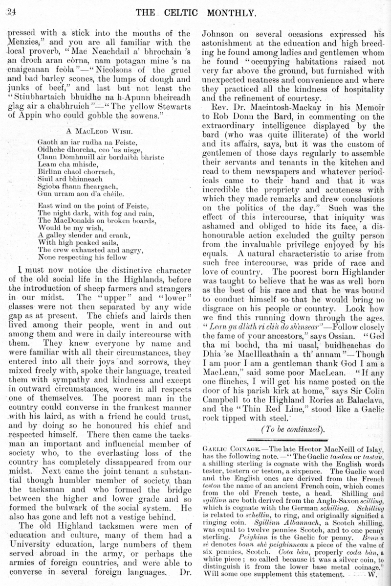 Highland Life and Character, Gaelic Coinage, Caiptean Ruadh Ghlinn