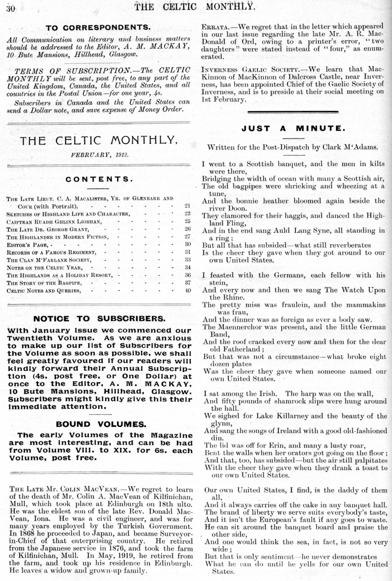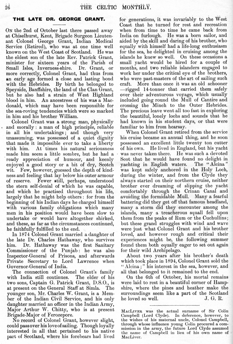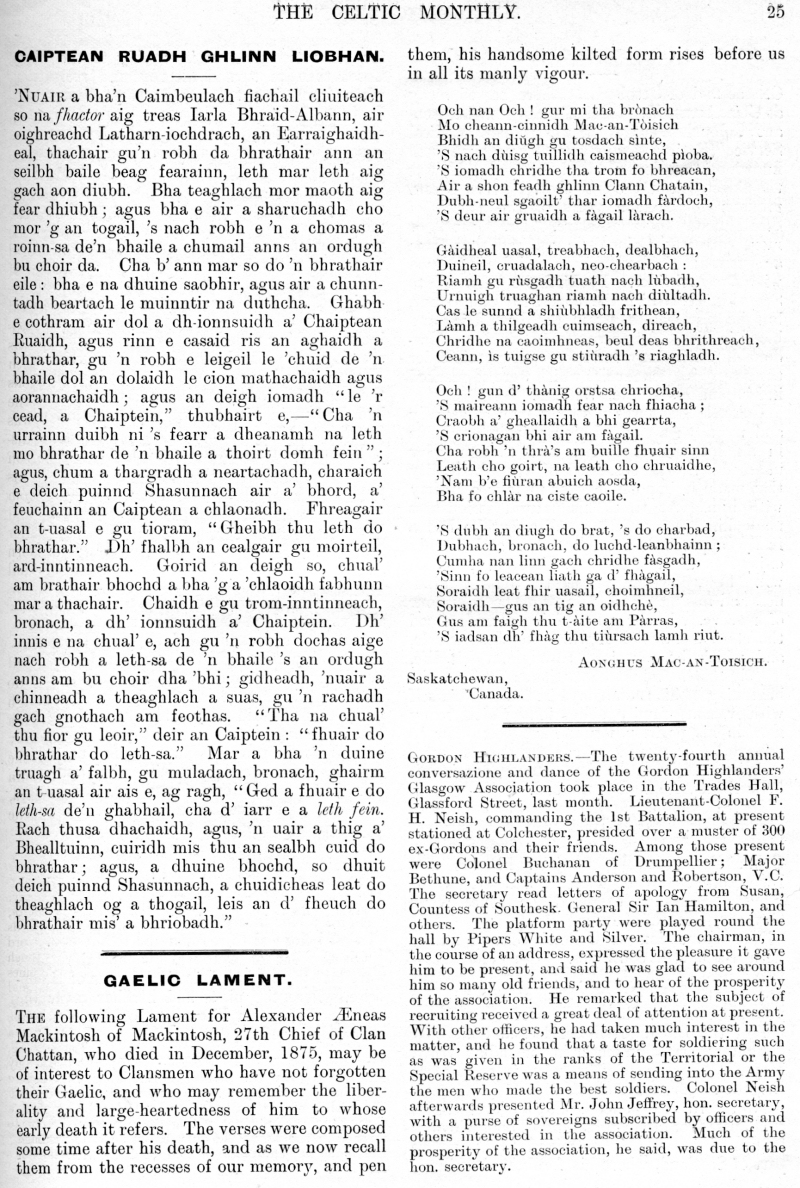 Liobhan, Gaelic Lament, Gordon Highlanders, The Late Dr. George Grant,