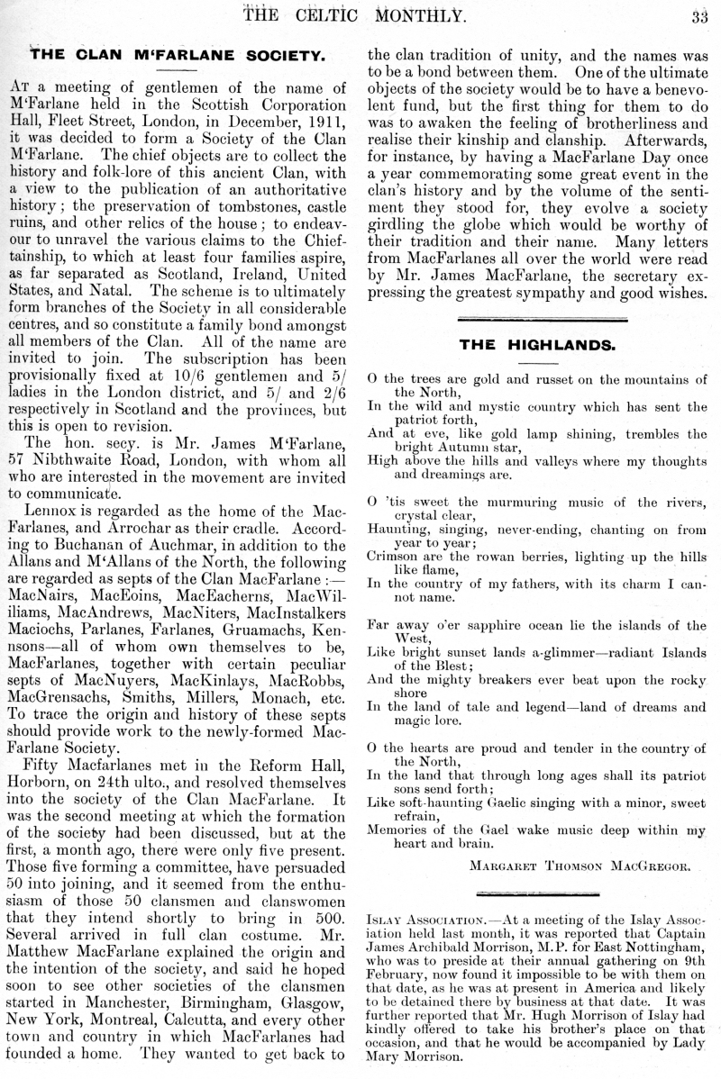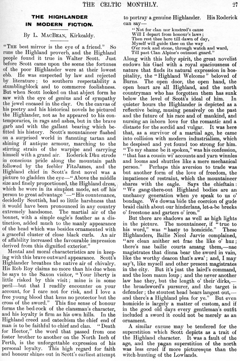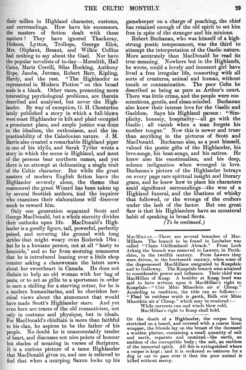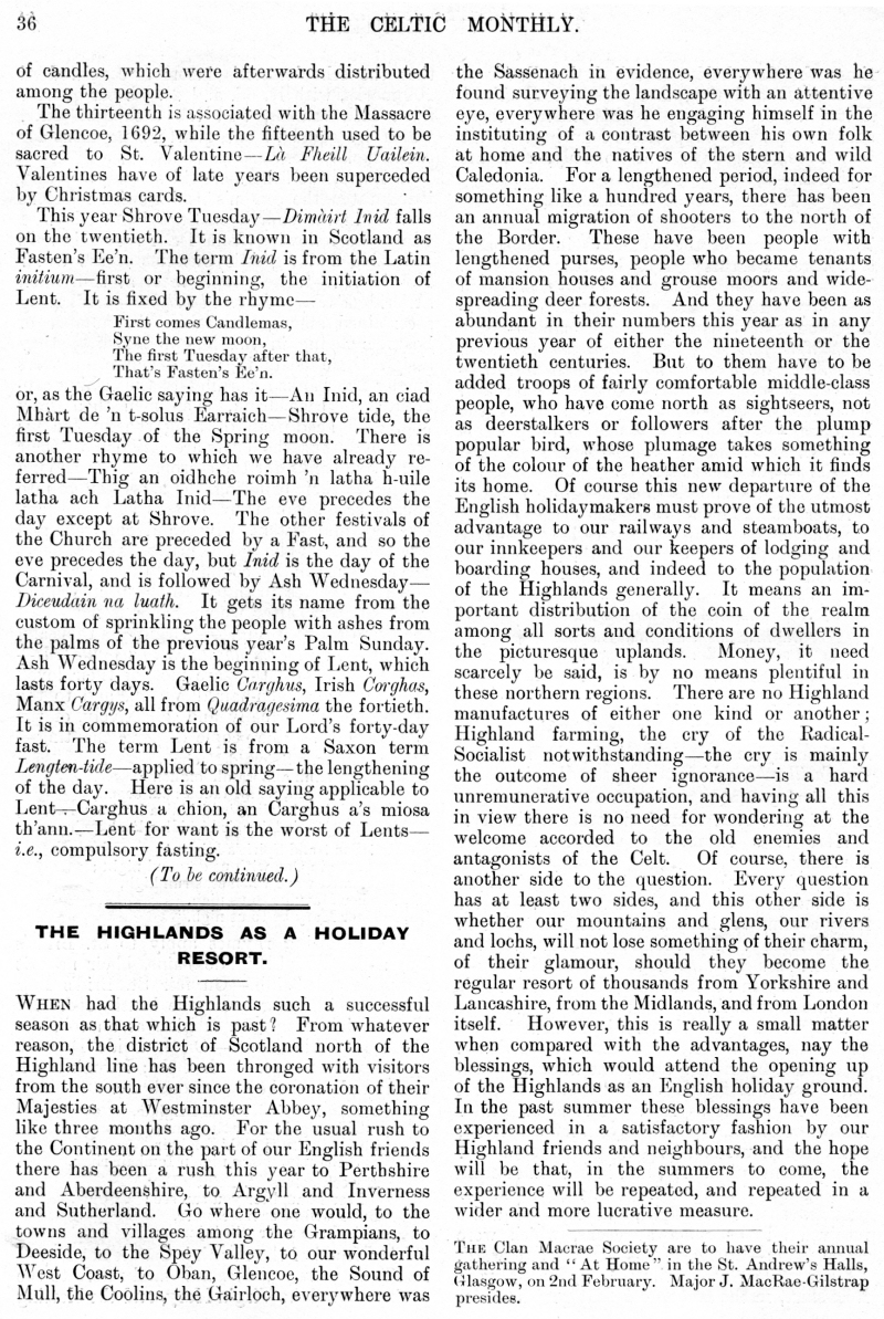 Society, The Highlands, Notes on The Celtic Year, The Highlands as a