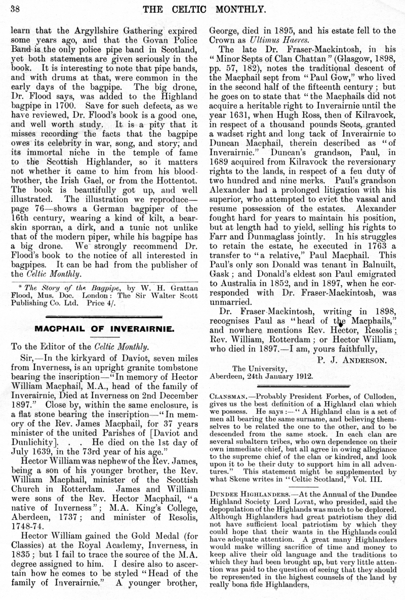 Holiday Resort, The Story of the Bagpipe, MacPhail of Inverairnie, Storm