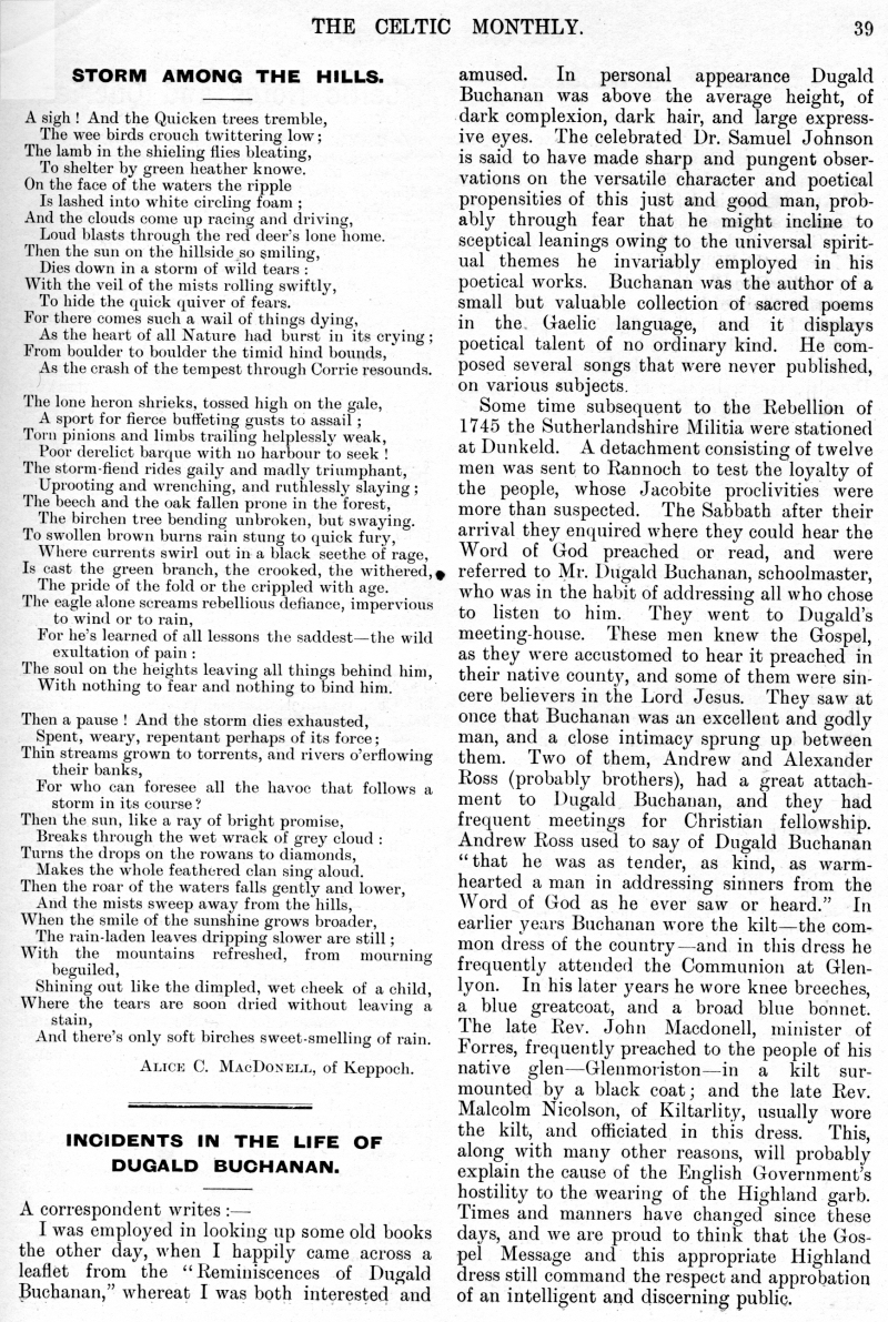 among the Hills, Incidents in the Life of Dugald Buchanan, The Surname