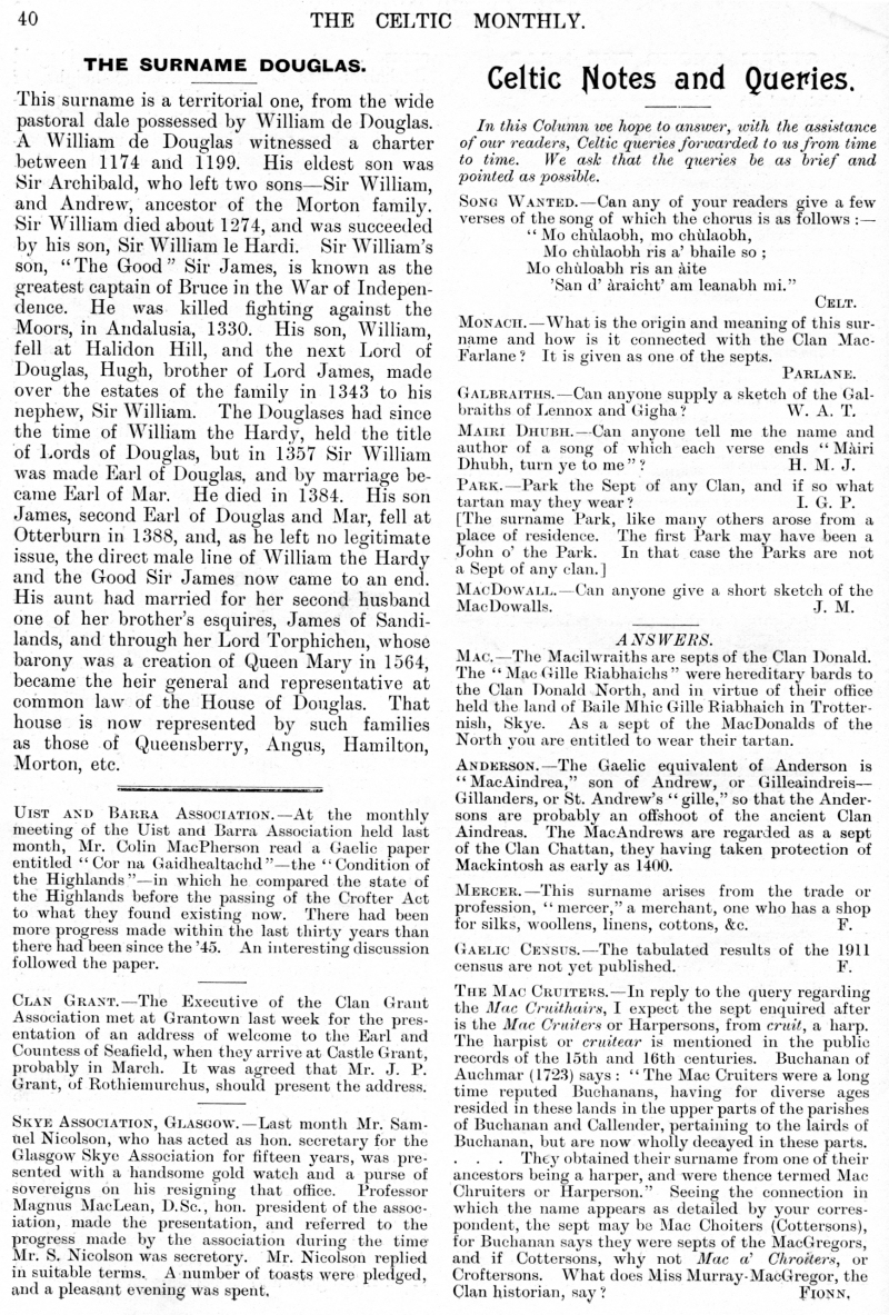 Douglas, Celtic Notes and Queries.