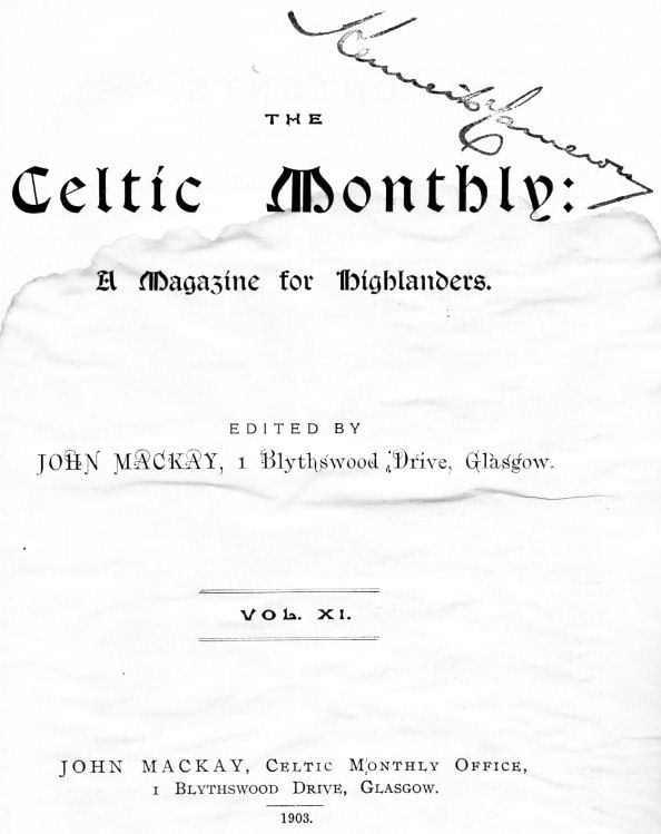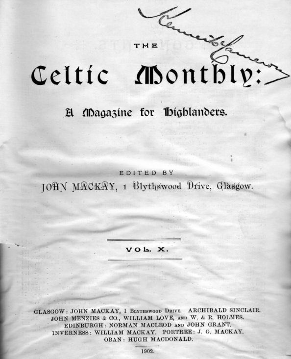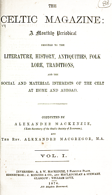 Celtic Magazine a mirror of the intelligent opinion of the Highlands,