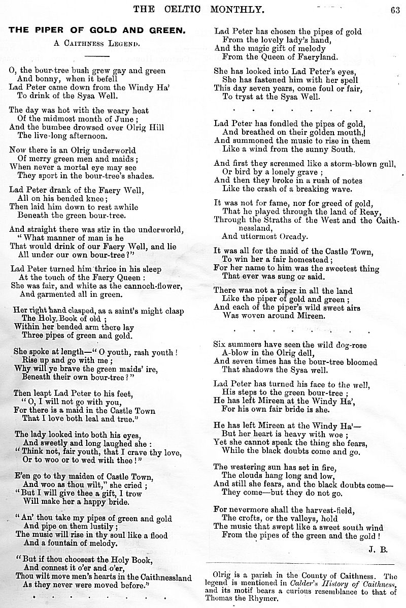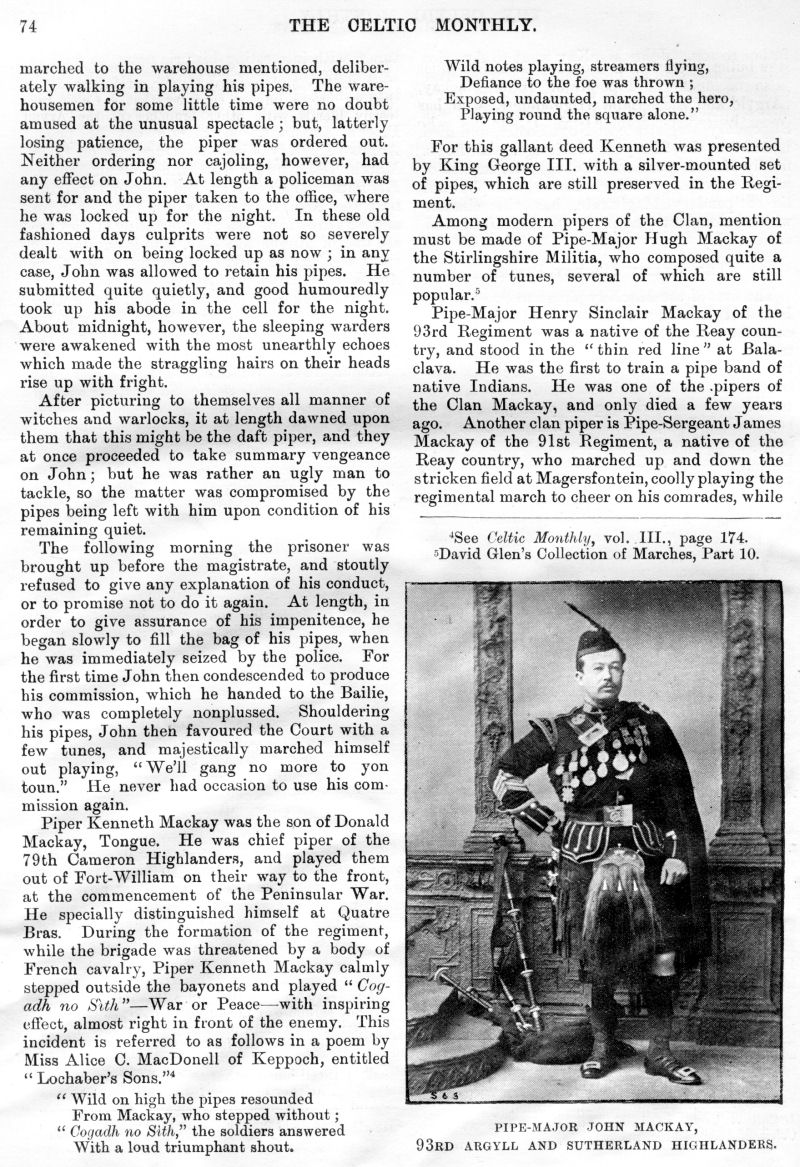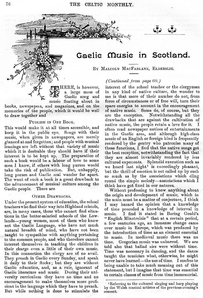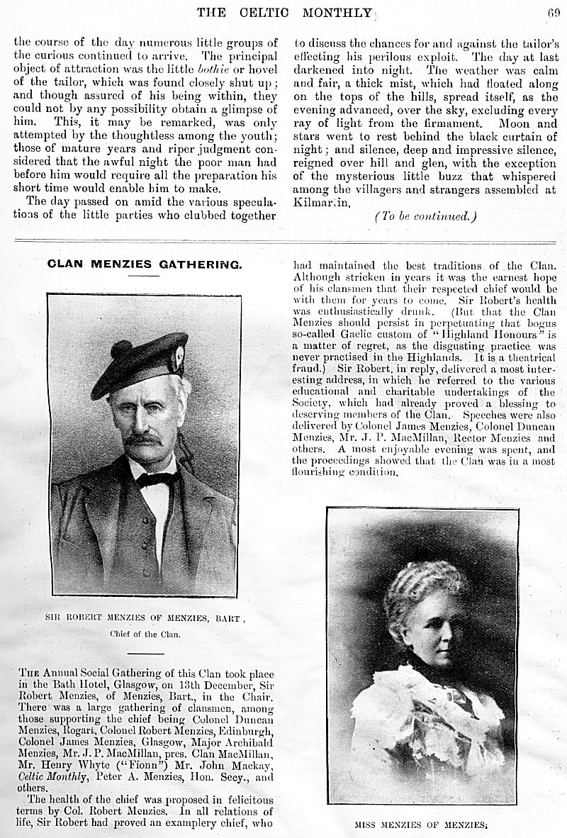 Charles M'Laren Liverpool, Albert Edward MacKinnon, The Song of Sleep, The Piper of Golf and Green, A Christmas and New Year Greeting, The Pledged Sporran, Clan Menzies Gathering, Martian Music of the Clans, The Marquis of Dufferin on the Races of Ireland, Gaelic Music in Scotland, Rognvald: Earl, Jorsala-Farer and Saint.