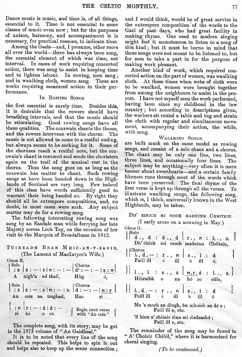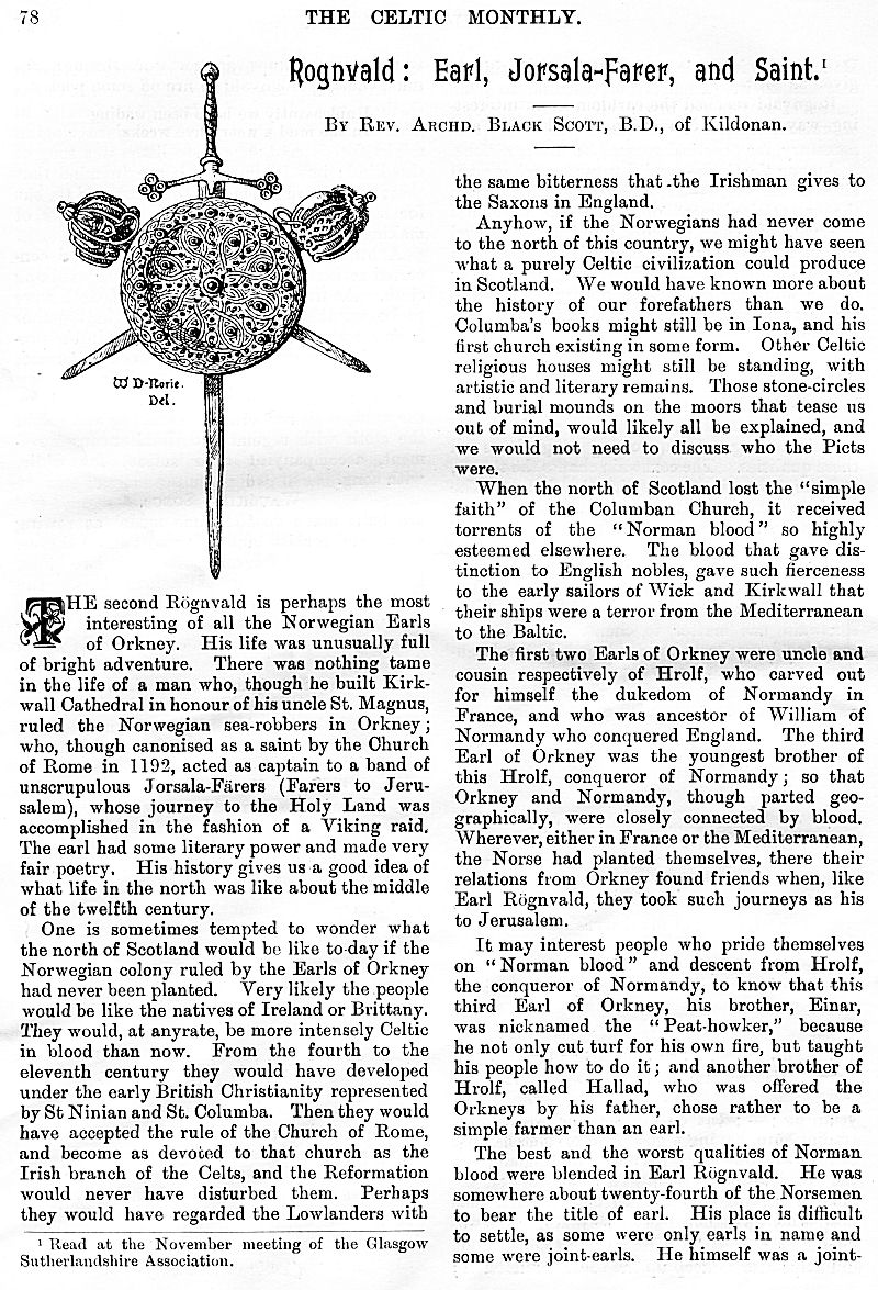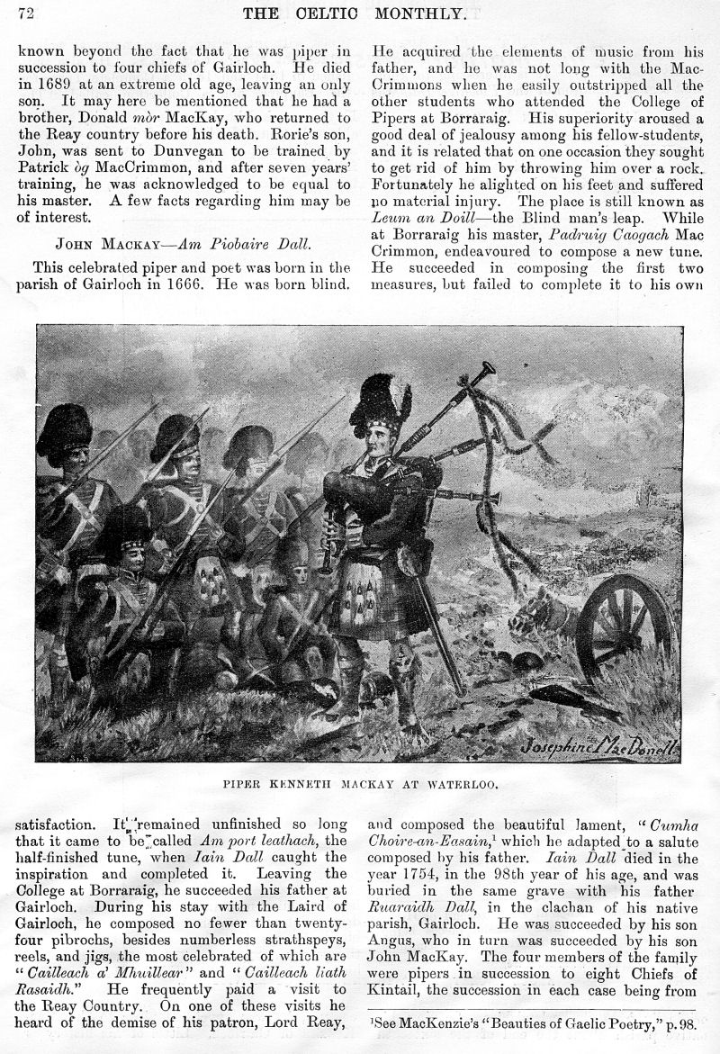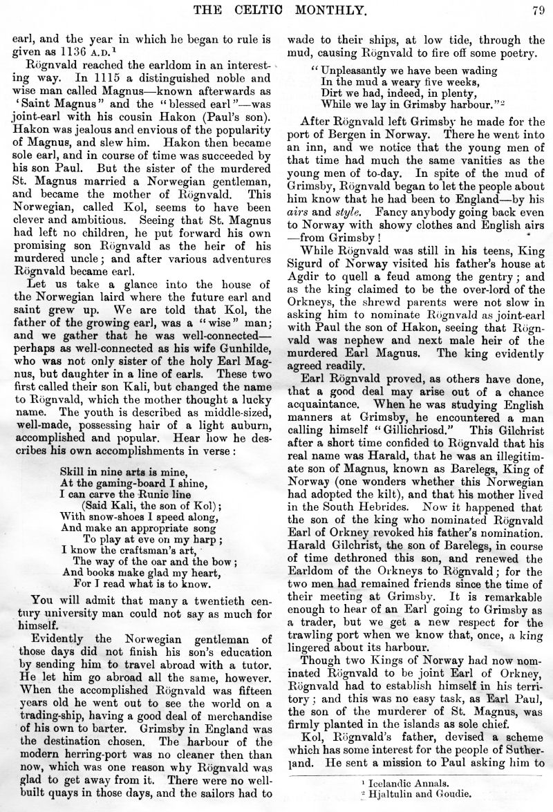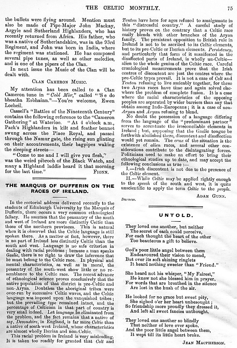 Charles M'Laren Liverpool, Albert Edward MacKinnon, The Song of Sleep, The Piper of Golf and Green, A Christmas and New Year Greeting, The Pledged Sporran, Clan Menzies Gathering, Martian Music of the Clans, The Marquis of Dufferin on the Races of Ireland, Gaelic Music in Scotland, Rognvald: Earl, Jorsala-Farer and Saint.