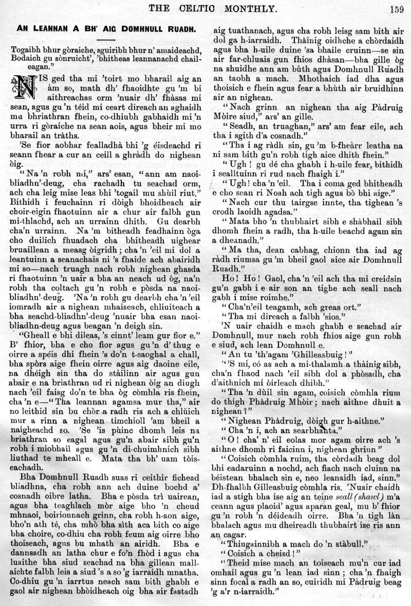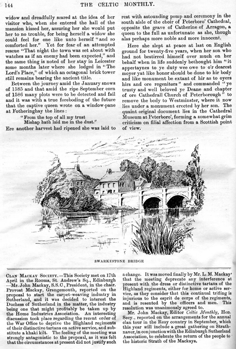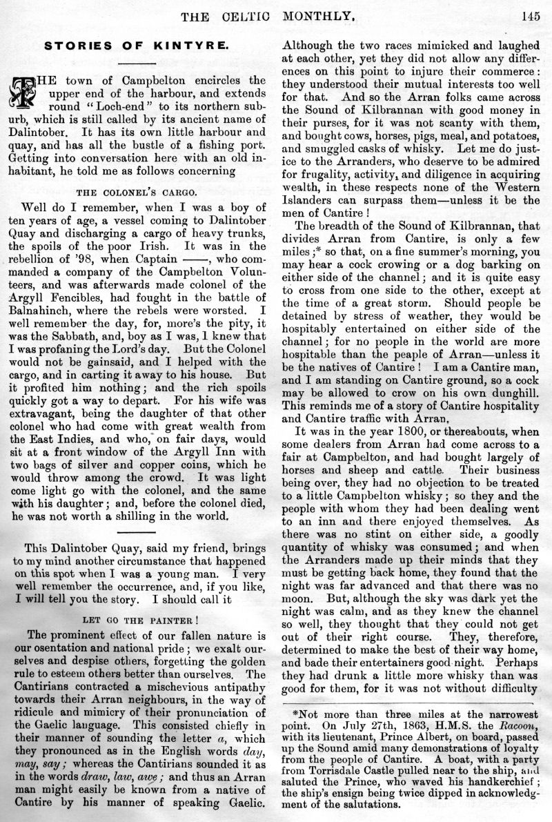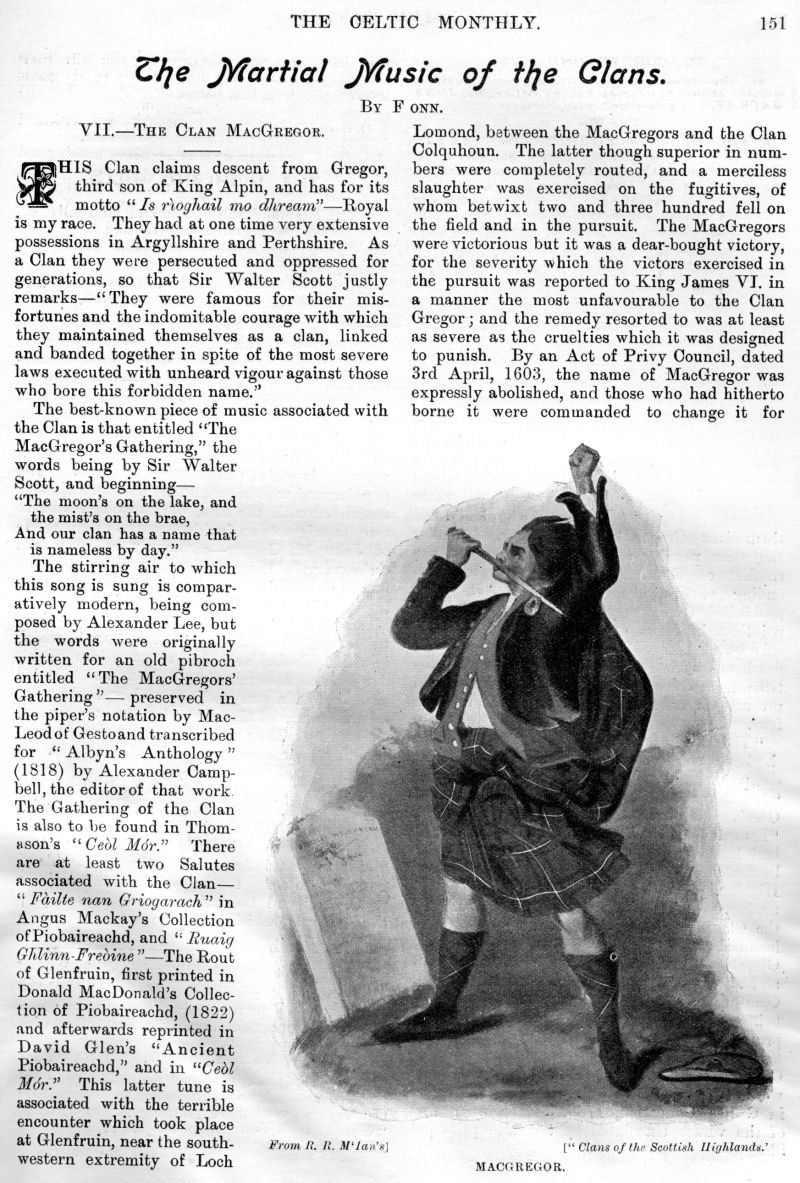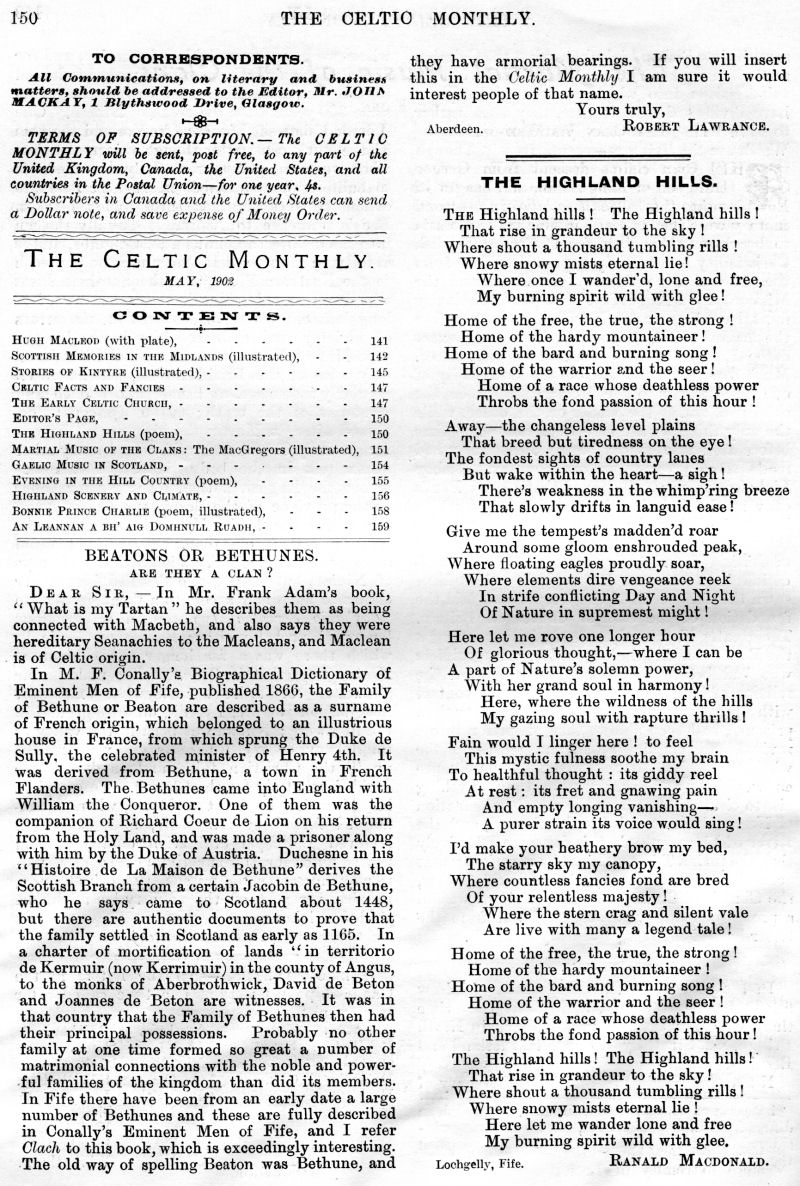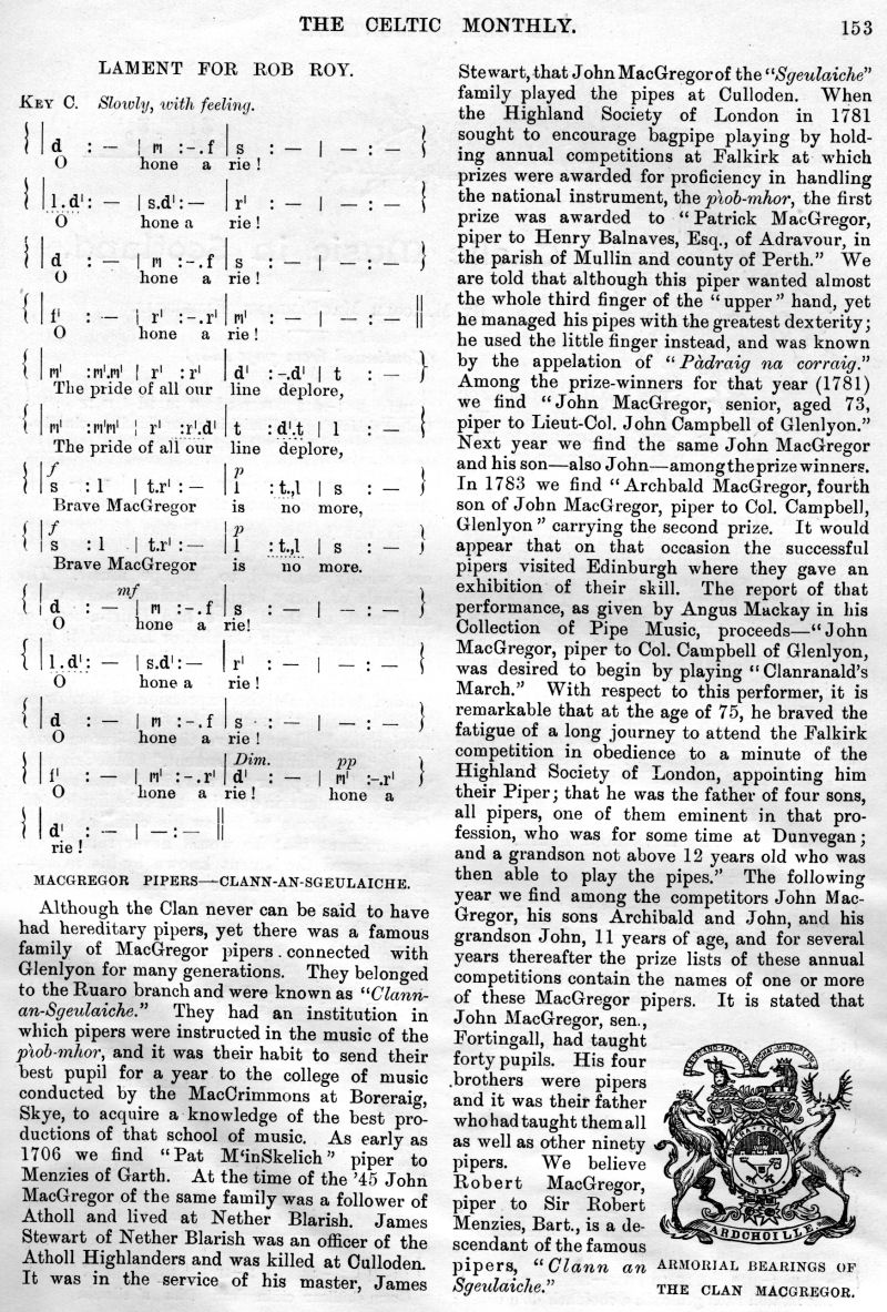 Hugh MacLeod of Glasgow, Scottish Memories in the Midlands, Stories of Kintyre, Celtic Facts and Fancies, The Early Celtic Church, The Highland Hills, The Martial Music of the Clans, Gaelic Music in Scotland, Evening in the Hill Country, Highland Scenery and Climate in Relation to National Music and Poetry, Bonnie Prince Charlie, An Leannan A Bh' Aig Domhnull Ruadh, Armorial Bearings of MacLeans of Dochharroch.