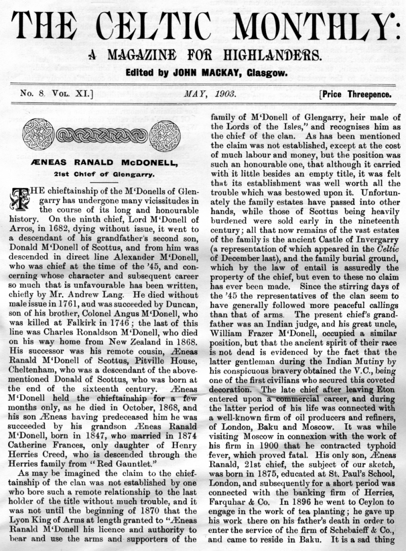 AEnas Ranald McDonell 21st Chief of Glengarry, Fighting Mac, The Eagle,