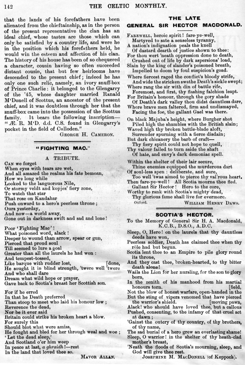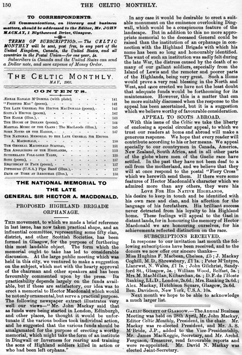 Harris, General Hector A. MacDonald, The General MacDonald Scandel, The