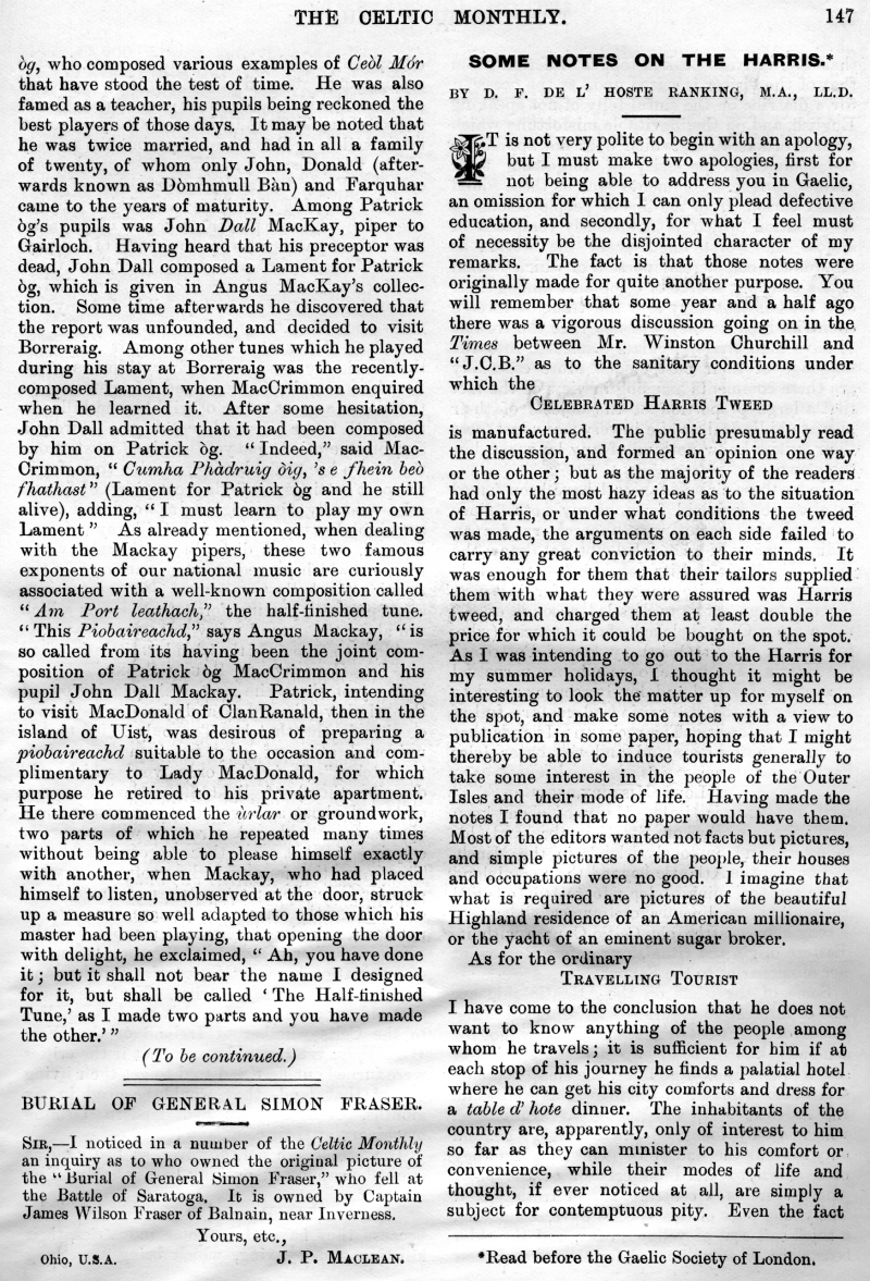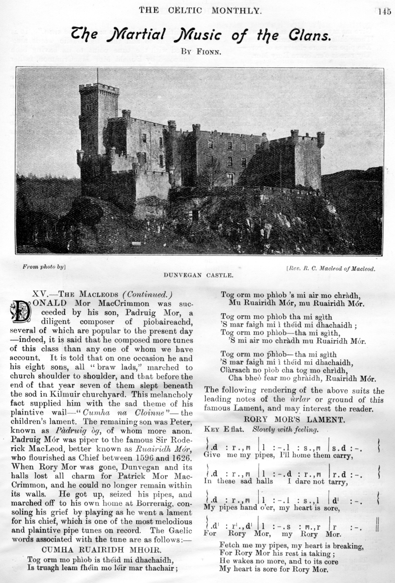 The House of Dreams, The Martial Music of the Clans, Some Notes on the
