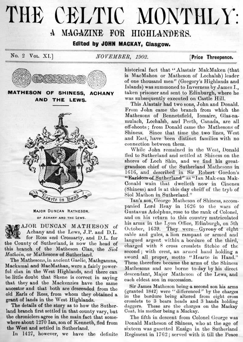 Matheson of Shiness, Achany and The Lews, Sergeant Jim of the Gordons,