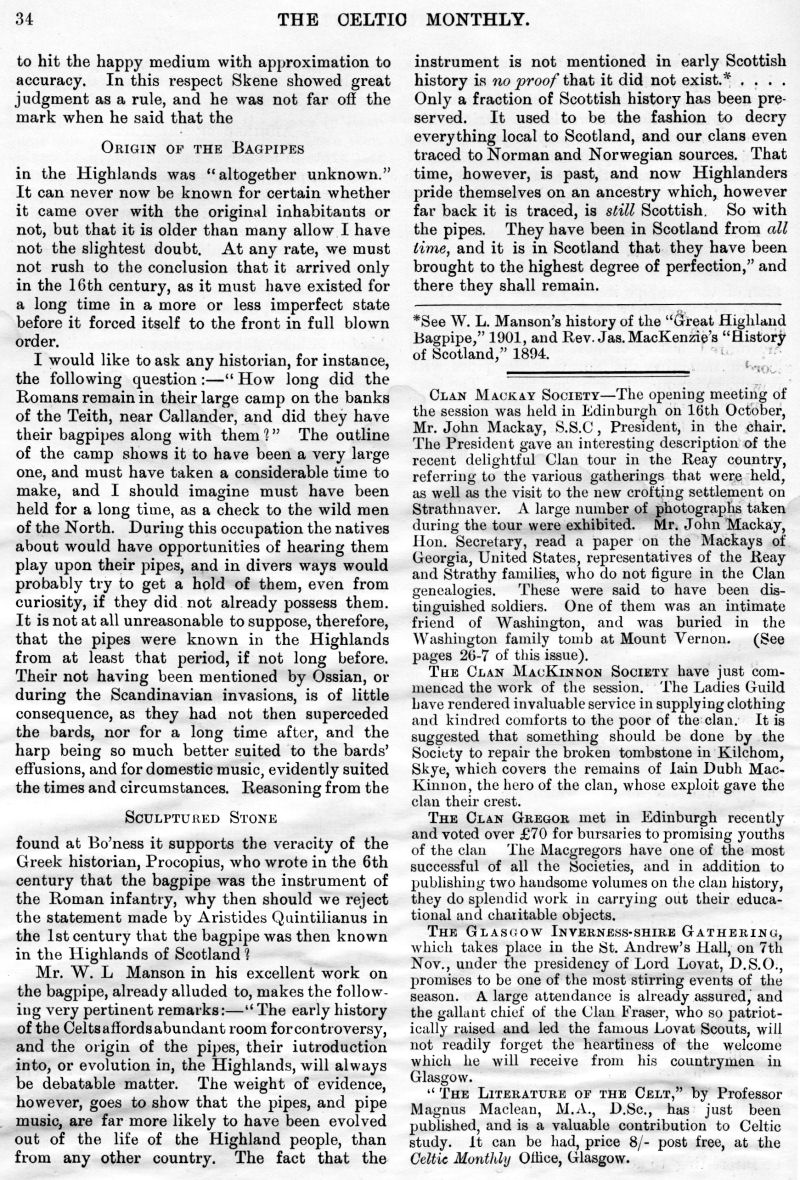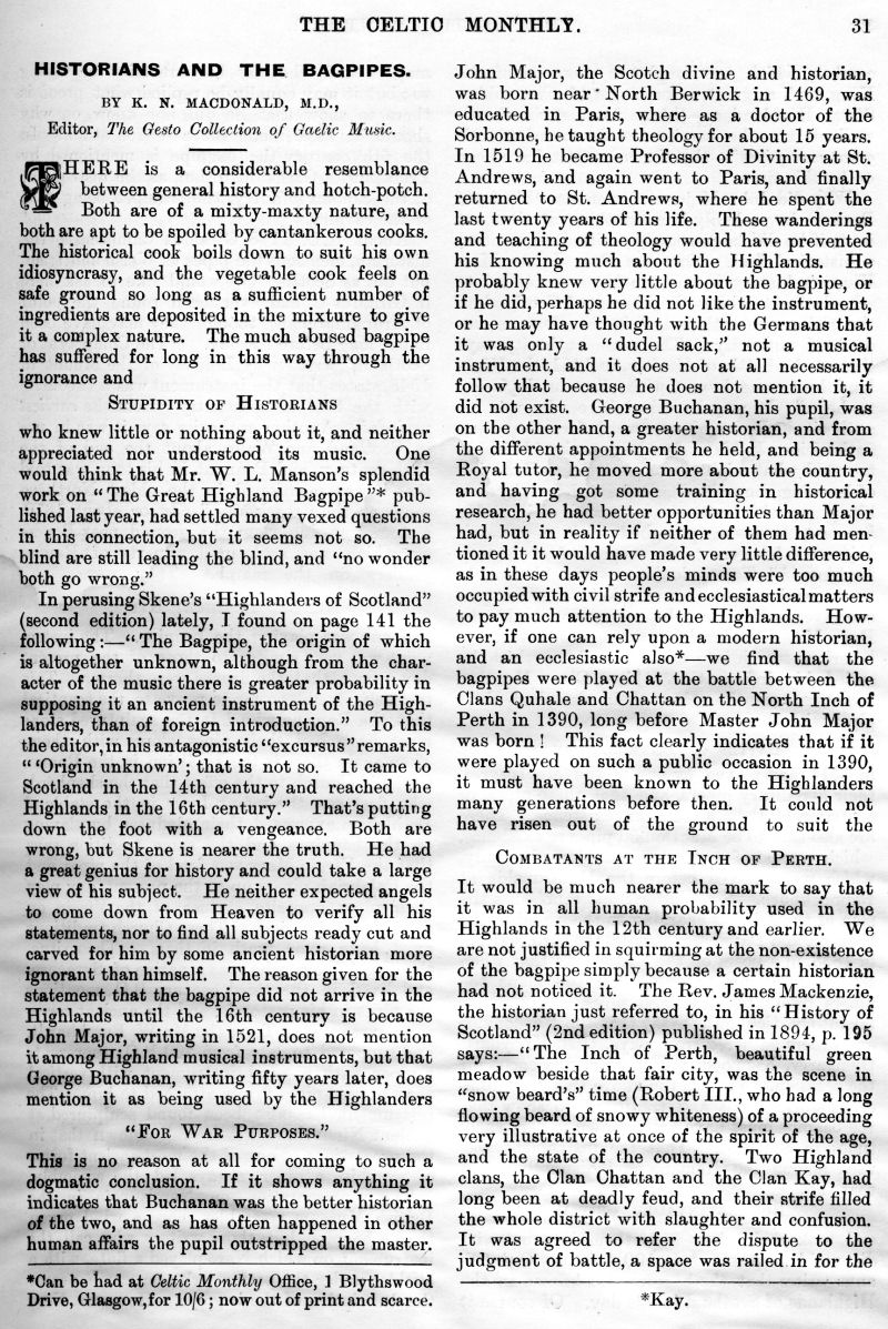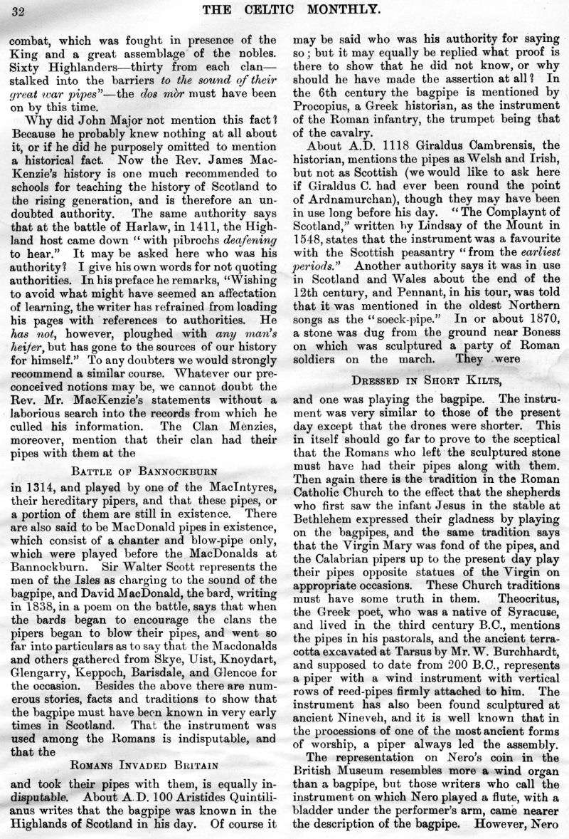 "Rarities in Caithness and Strathnaer, Histories of the Bagpipes,