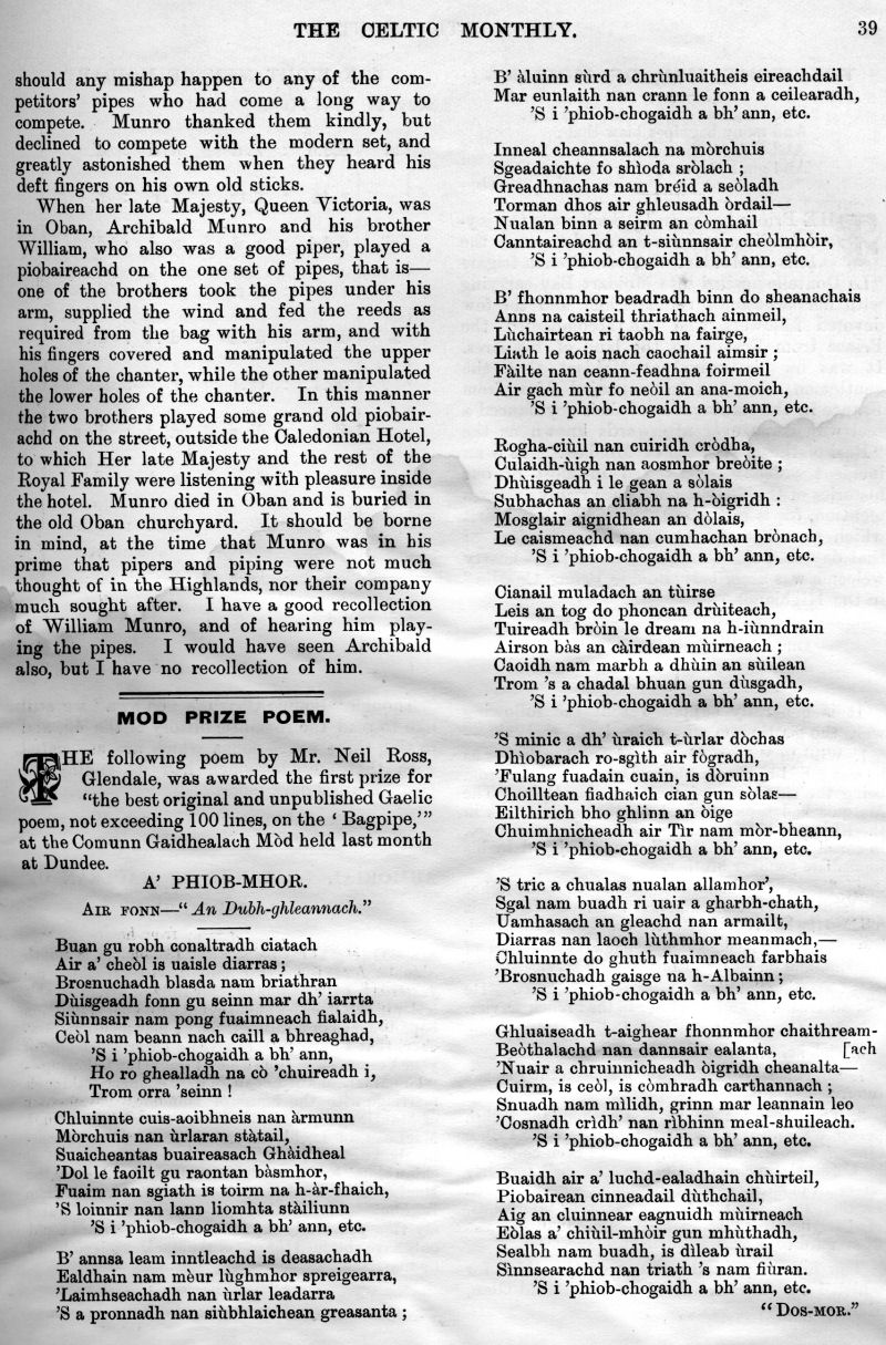 MacLean Lord of Dowart, The Martial Music of the Clans, Mod prize poem,