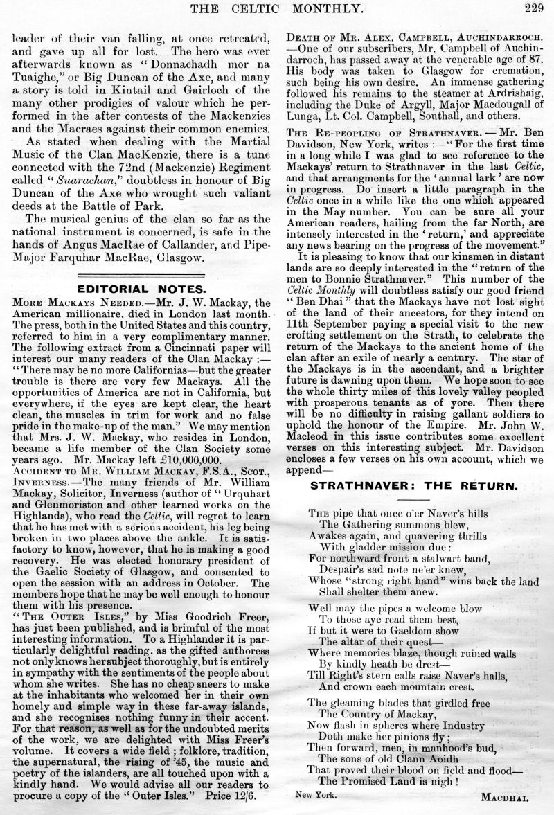 Strathnaver: The Return, Skene as an Historian, Lady Lude of the "Forty