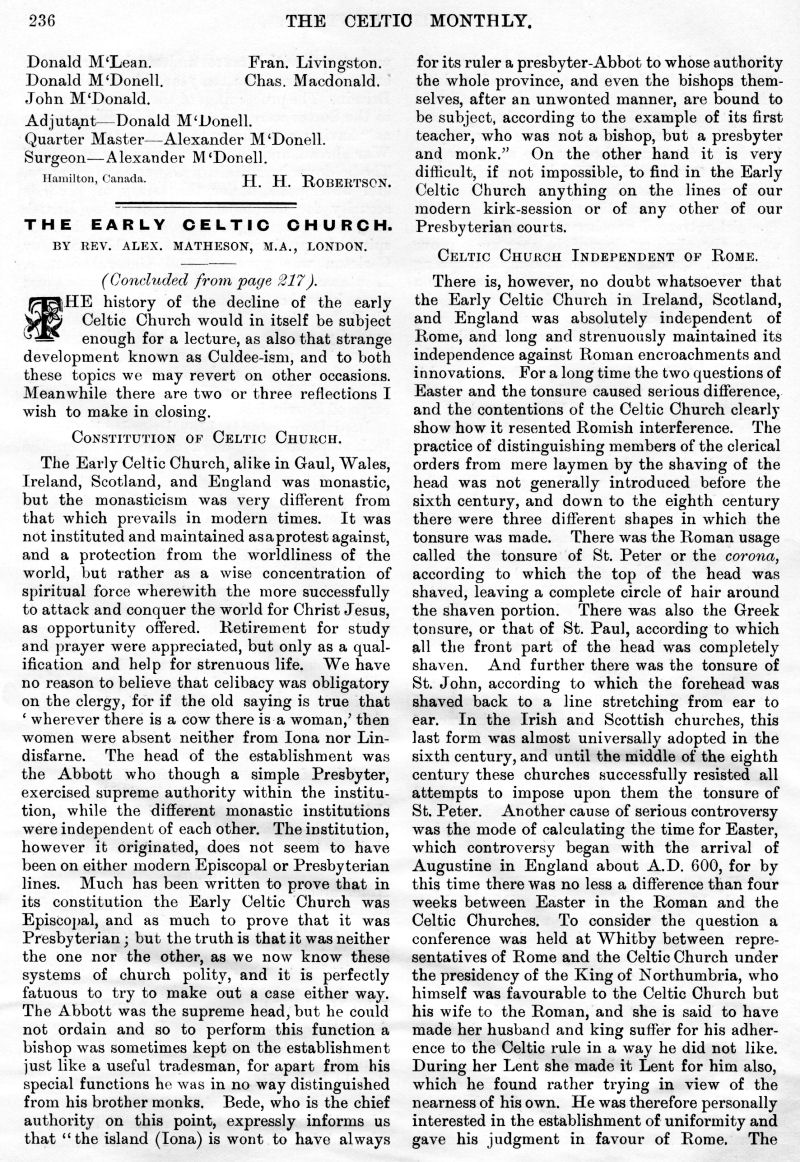 England Loyalists, The Early Celtic Church, Concerning Aunt Betsy and