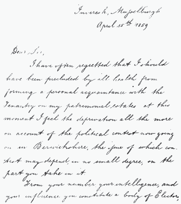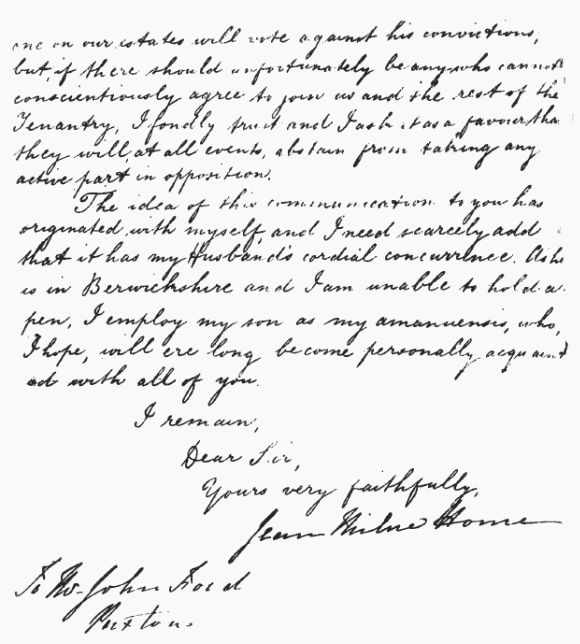 contest Northumberland. Here is the letter of which we produce a facsimile: