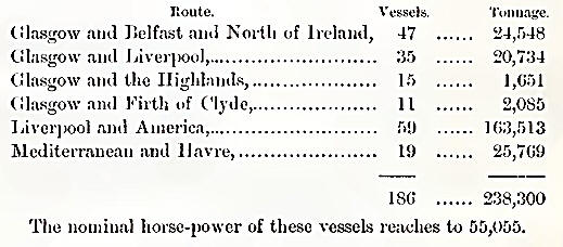 are: Glasgow and Belfast, 1824; Glasgow and Liverpool, 1828; Glasgow