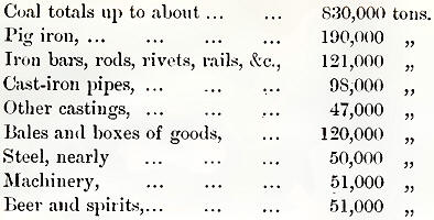 and tonnage of the ports on the river appear to be as follows:—