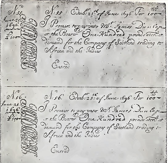 On 18th June 1696 an engraved copperplate for printing bank notes was given in charge by the Court of Directors to their Committee of Treasury, "to be kept under lock and key with the cash." The committee were also ordered to take care " that no copies or blank bills should be cast off or printed, but in presence of three at least of their number; who were further directed to take all such blanks into their special care, as if the same were real money."