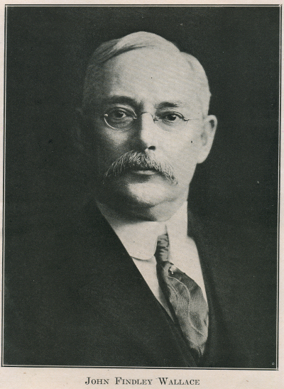 Mr. John Findley Wallace studied at Monmouth College, received his degree of C.E. from the University of Wooster, 1882, and Sc.D. from Armour Institute, 1904. He was honoured with the degree of LL.D. by Monmouth College, 1904, and at its sixtieth commencement anniversary, 1916, was called upon to make the annual address.