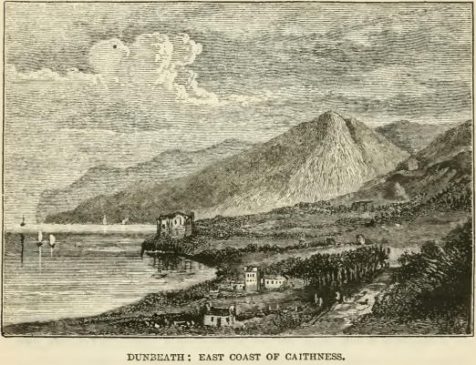 Anxious to make the most of the limited time at his disposal, Dick passed up Dunbeath Water, while daylight was but a mere glimmer, picking his way among the boulders as he best could. Keeping on the right hand of the burn, he came to a magnificent cliff of dark boulder clay containing marine shells. “I stood,” he says, “in amazement at the scene, in the dim light of the morning. I would willingly have sat down on a stone and waited the coming of the day. But the whole breadth of the county lay before me, with mires and moors unutterable. To linger here might be fatal, should darkness overtake me. I might never be able to struggle out of these horrible moors. So ‘On, on ’ was the watchword!