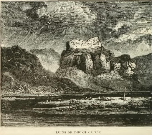 “After the river passes this bridge its channel becomes rugged in the extreme. Then you come to Dirlot Castle —a picturesque ruin on a granitic rock, about thirty feet over the river’s channel—a very romantic spot!”